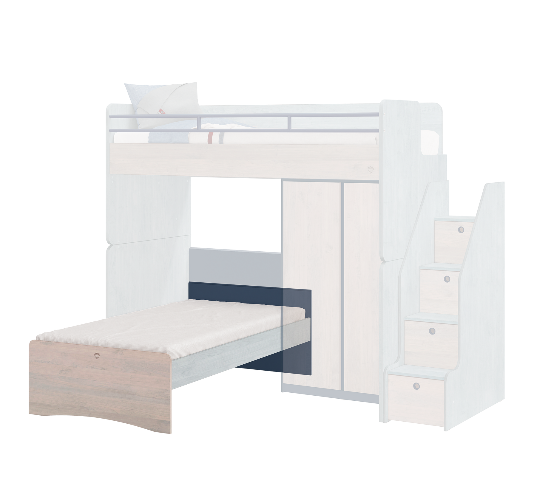 The bed in 100x200 cm dimensions can also be used as a bunk bed in harmony with the upper bunk and lower frame modules in the same colors from the Studio series.
