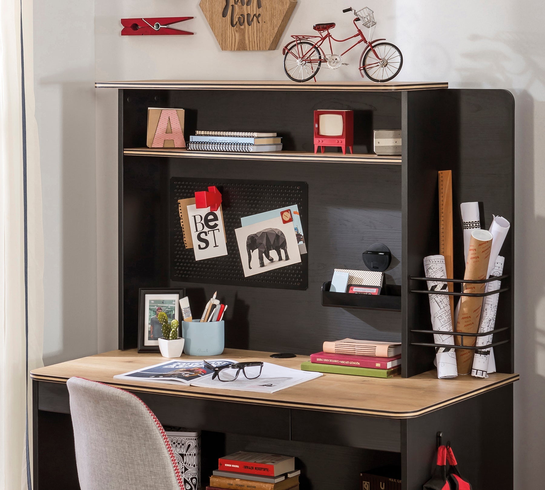 تتميز الوحدة المكتبية الصغيرة Black بتصميم دائري وملحقات معدنية، حيث تجسد أسلوب الأثاث التجريبي في الغرفة. تتمتع الوحدة بتعدد الاستخدامات، وتوفر هيكلًا وظيفيًا يتضمن أيضًا الابتكارات التكنولوجية. التصميم يلبي احتياجات متعددة مثل المكتبة، وحدة الشحن، والرفوف الزخرفية، ويعكس جميع متطلبات المكتب المصغر. يمكن للمستخدمين الراغبين في فتح المزيد من المساحة للأثاث الحفاظ على تماسك المساحات وتنفيذ التعديلات المطلوبة بسهولة مع الوحدة المكتبية Black.