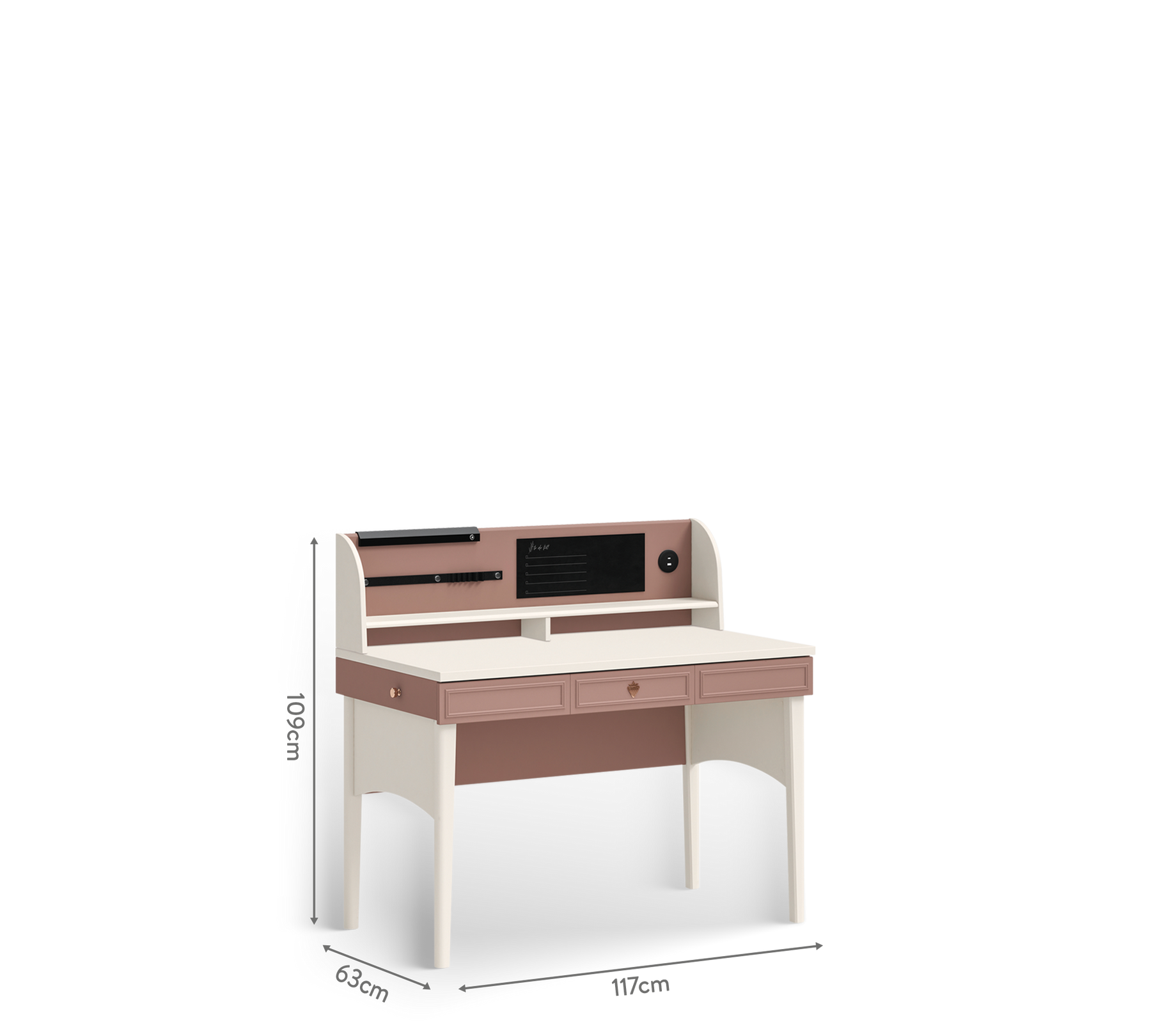 Featuring a large single drawer with the appearance of three drawers and three compartments, working becomes more enjoyable, and the inspiration you need to sit at your desk is always at hand.