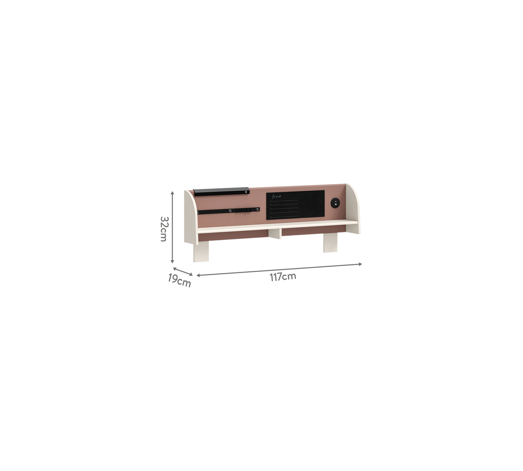 The movable LED lighting system, which works via touch and can move in two directions, provides a comfortable working experience even in dark environments. The unit also includes a blackboard where notes can be written with chalk or liquid chalk markers.
