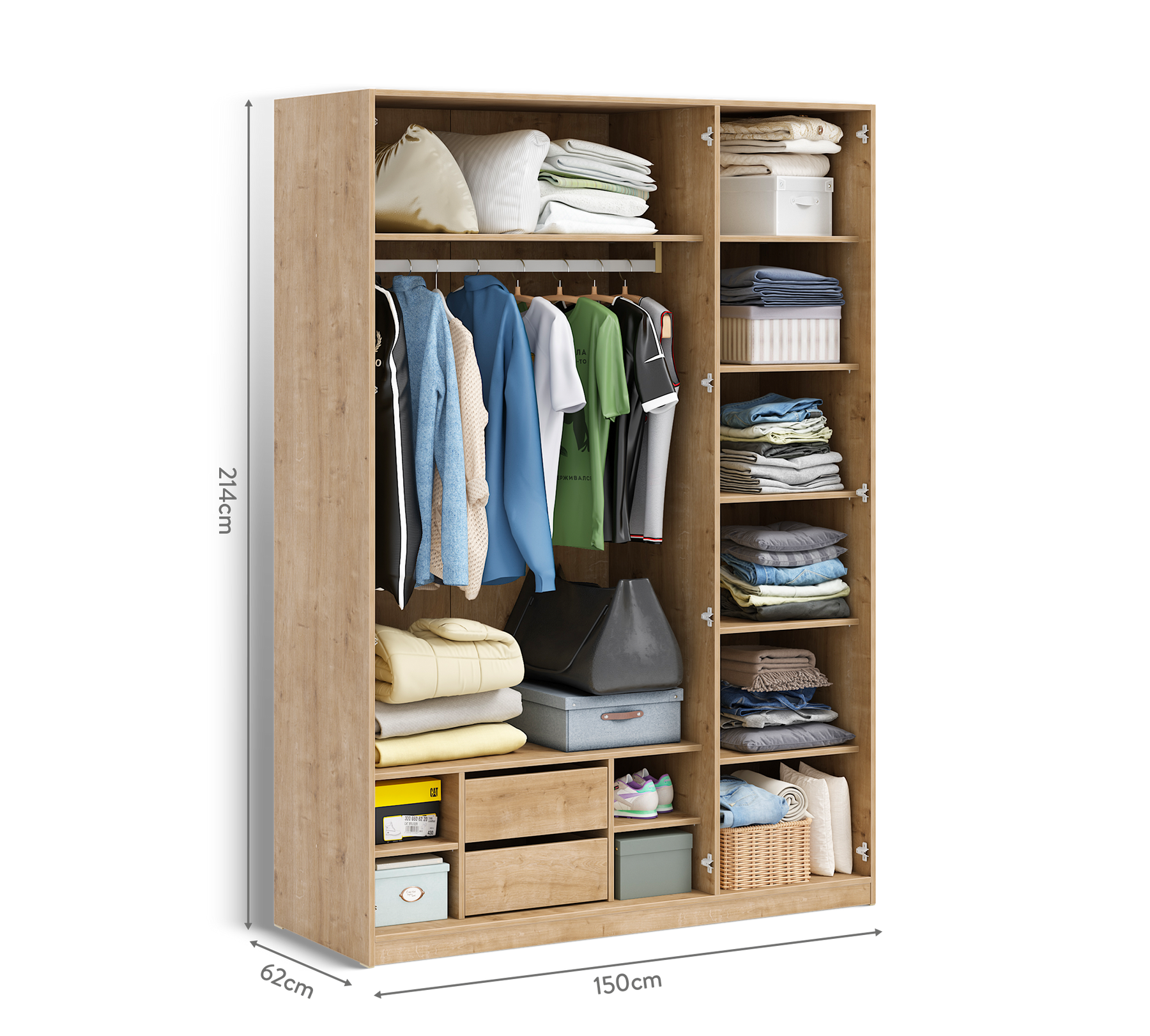 عرض: 150 cm | ارتفاع: 214 cm | عمق: 62 cm