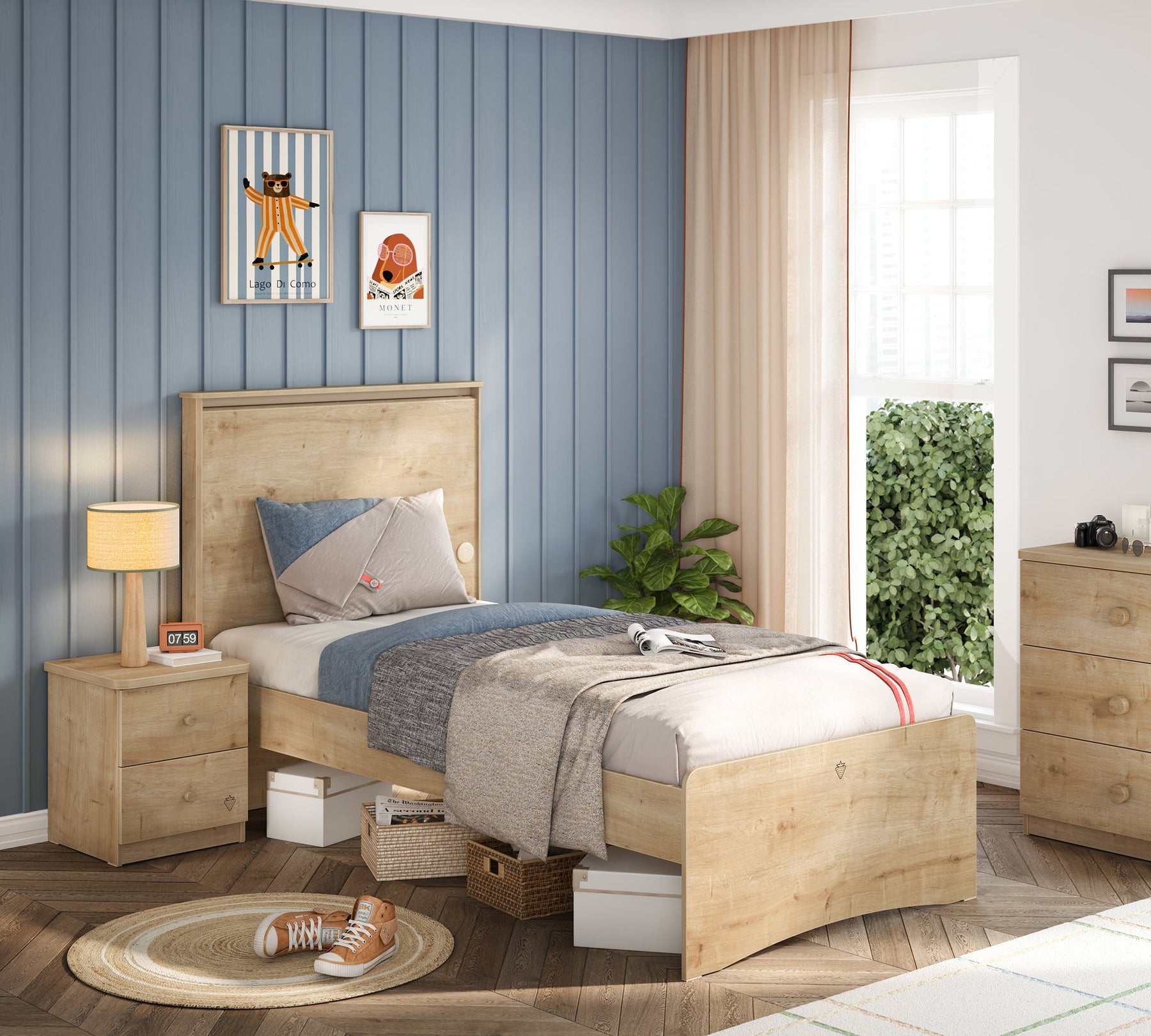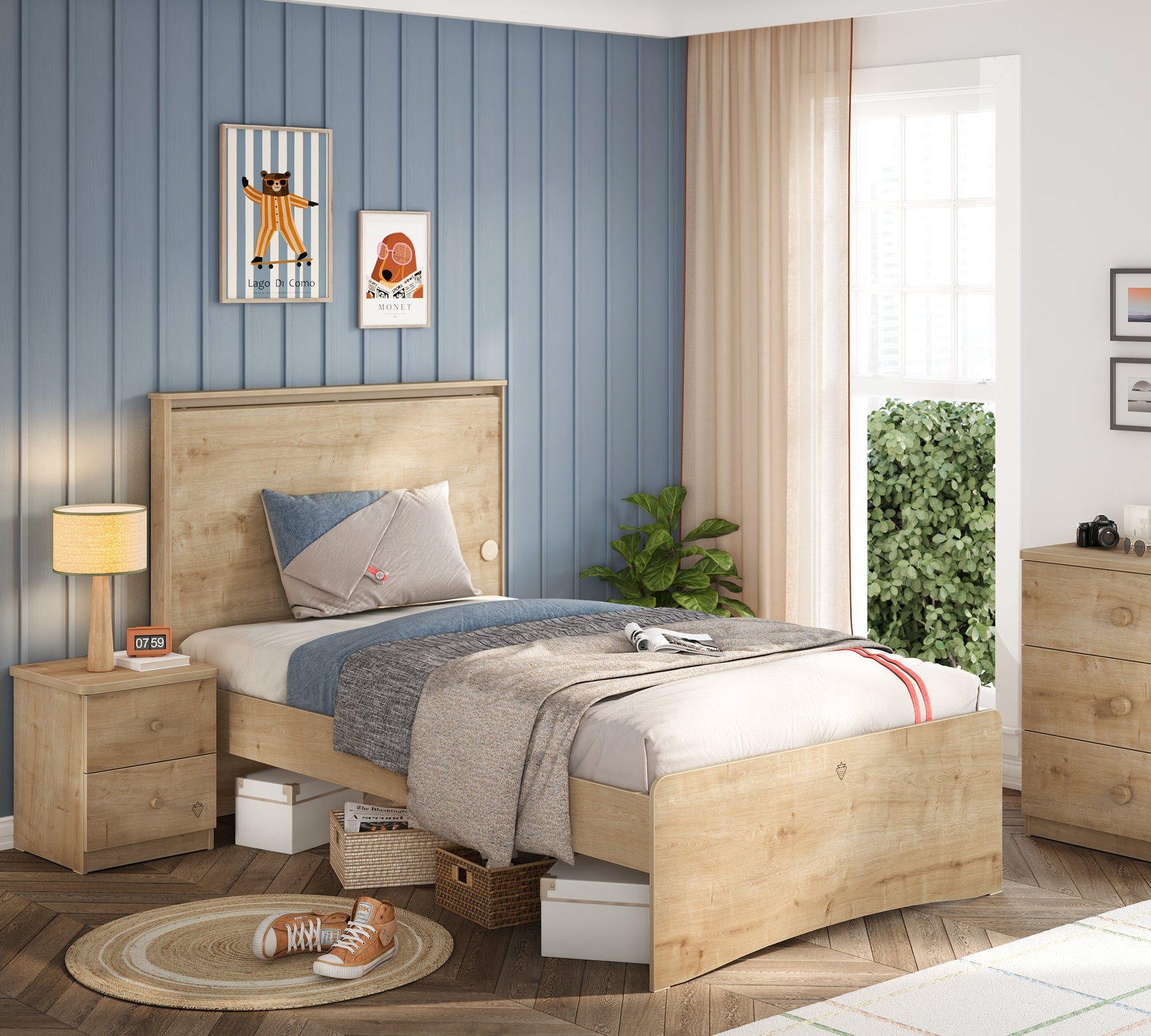 لتجربة نوم مريحة، يمكن استخدام سرير موكا كسرير، مما يُتيح خيارات بسيطة وأنيقة عند استخدامه مع رؤوس سرير بديلة في تصميم غرف الشباب.