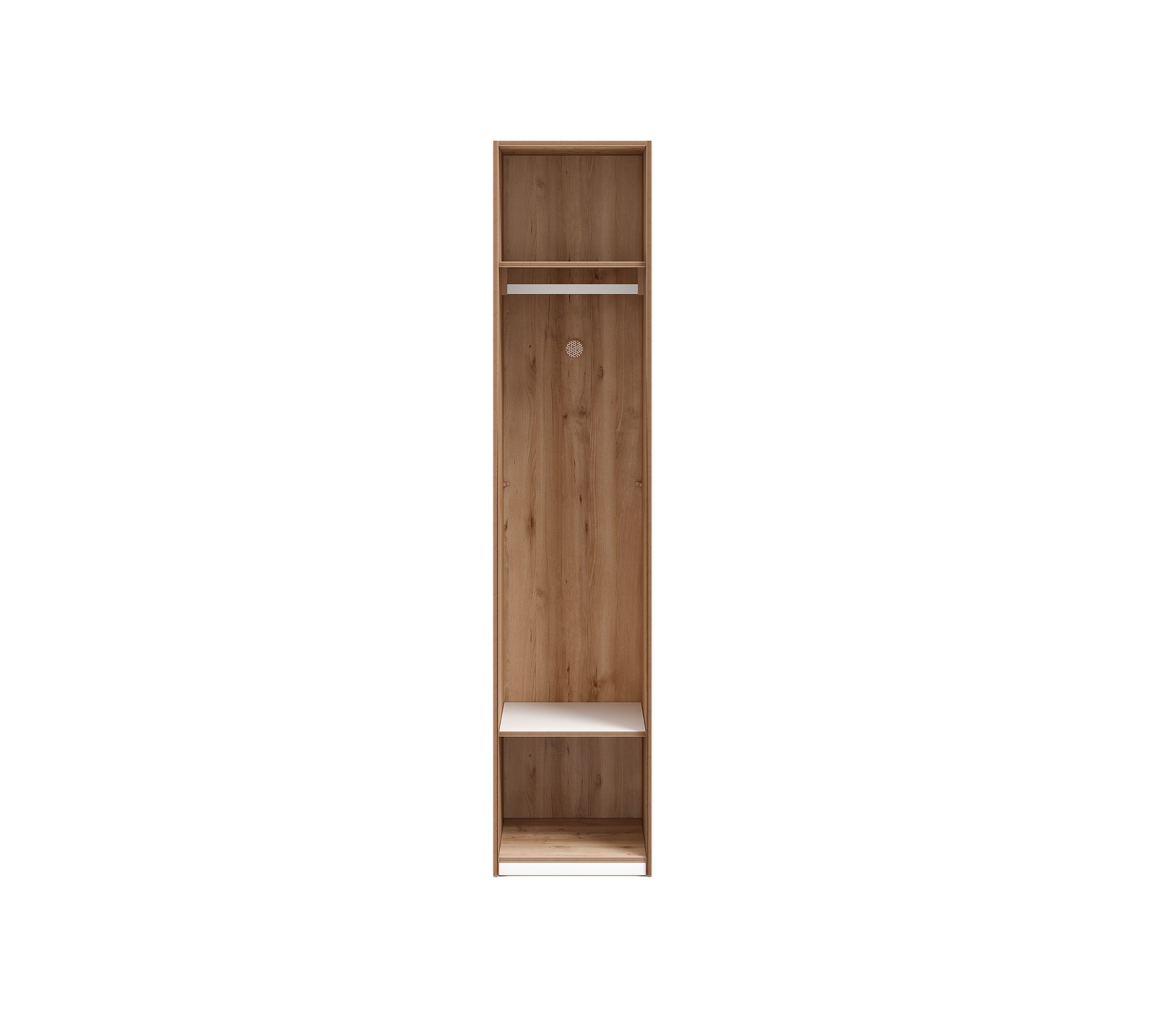 يقدم مساحة داخلية مرتبة وعملية مدعومة بأرفف في الأعلى والأسفل، حيث يمكنك تخزين ملابسك معلقاً. تعمل فتحة التهوية الخلفية التي تسمح بدخول الهواء إلى الداخل حتى مع غلق باب الخزانة على إبقاء ملابسك منتعشة دائماً. كما يوجد في هذا الطراز ما يمنع الخزانة من الانقلاب، مثل جميع خزاناتنا، مما يعزز الأمان.
