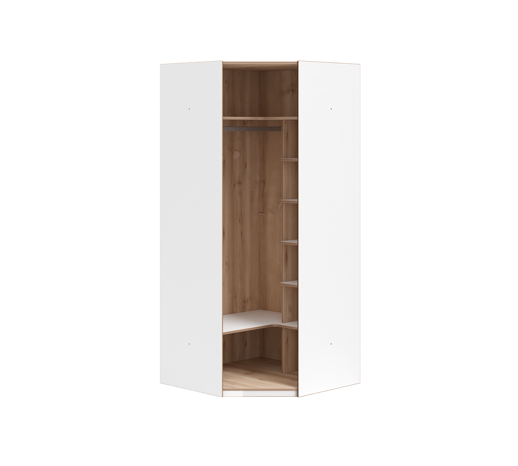 دولاب موديرا الزاوي، يقدم مساحة استخدام واسعة قريبة من حجم الدولاب ذي الأبواب الثلاثة، مما يوفر حلاً قويًا لاحتياجات التخزين. بفضل إمكانية الاستخدام من الجانبين، يمكن وضعه بطريقة مرنة وفقًا لتخطيط الغرفة.