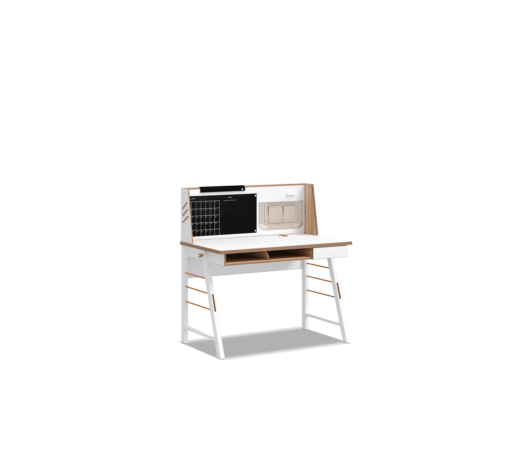 واحدة من الميزات الأكثر لفتاً للانتباه في وحدة العمل هي السطح المغطى باللوح الأسود. يتم إرسال قلم كتابة واحد مع المنتج. يمكن كتابة الملاحظات على اللوح بهذا القلم أو باستخدام الطباشير عند الرغبة؛ وبمجرد أن تجف الكتابات، يمكن مسحها بسهولة بقطعة قماش مبللة. توفر مساحة مثالية لملاحظات الدروس والتذكيرات أو الأفكار الملهمة.