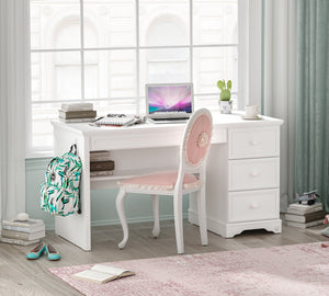 Designed to match the Rustic White collection’s desk, the ergonomic unit, featuring a floral detail that adds a touch of elegance to the room, can be mounted to the wall using the included hardware, ensuring your child’s safety.