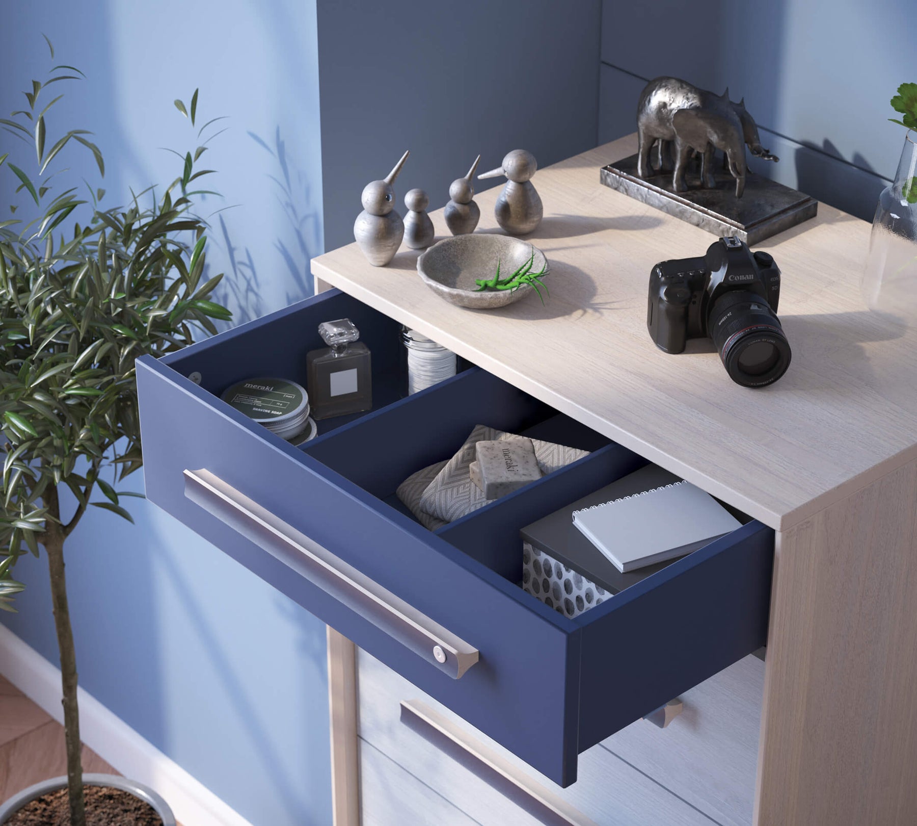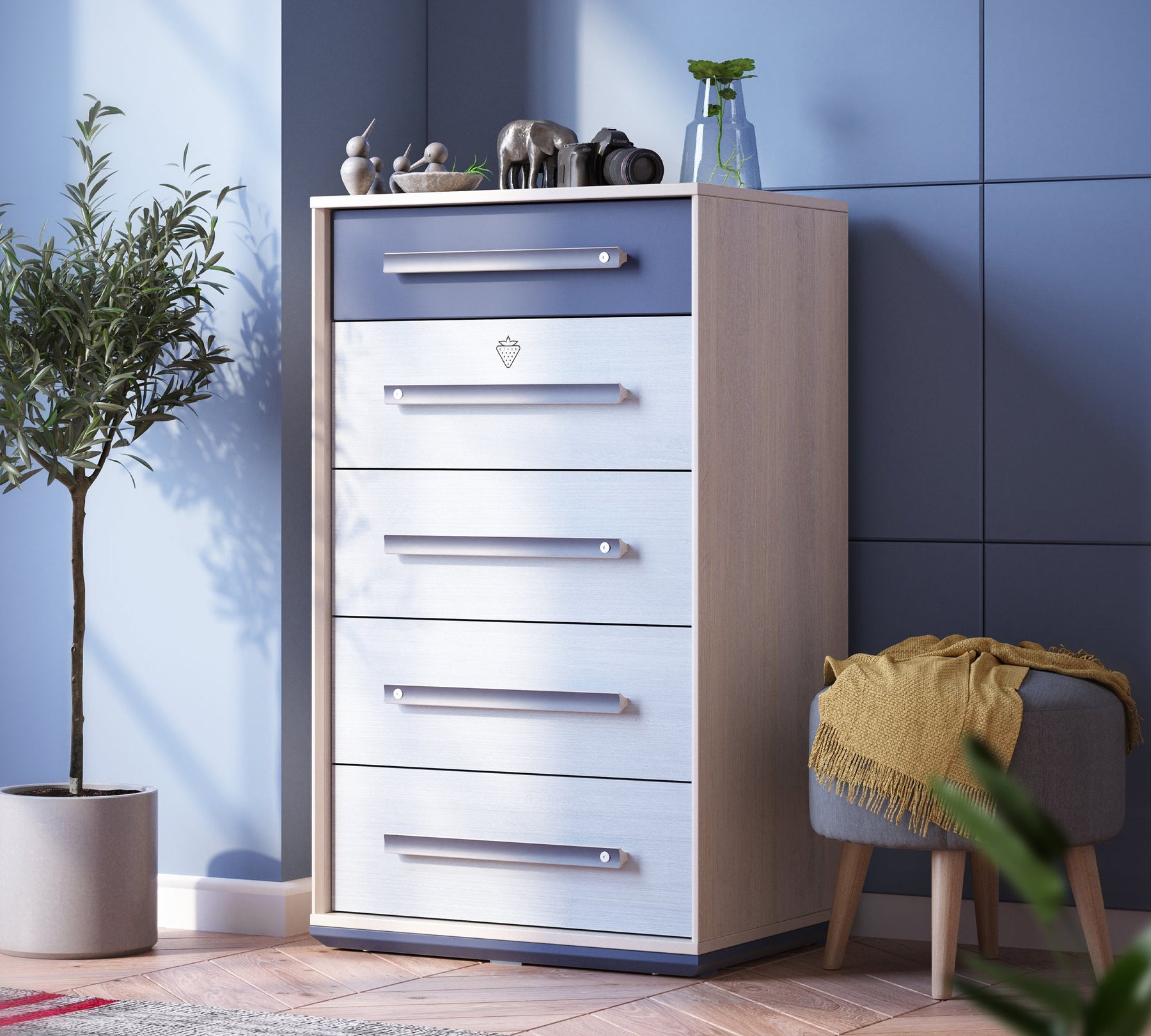 تضفي وحدة التخزين الطويلة Trio راحة فريدة على مساحات حياة الشباب، حيث توفر مساحة تخزين خاصة بفضل أدراجها العملية. تُعد Trio وحدة التخزين الطويلة مكملًا مستقلًا لتخزين ملابس الشباب وممتلكاتهم الخاصة، وتتكون من خمس أدراج. تساعد الأقسام الموجودة داخل الأدراج على استخدام المساحة الداخلية بشكل أكثر فعالية عند ترتيب الأغراض.