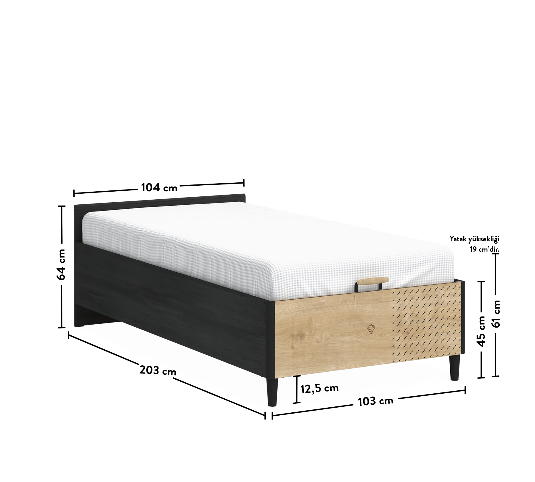 Designed for small rooms to provide wide space solutions, base beds with the option of 100x200 cm can be easily cleaned with robot vacuum cleaners thanks to their 12 cm high leg structure feature.