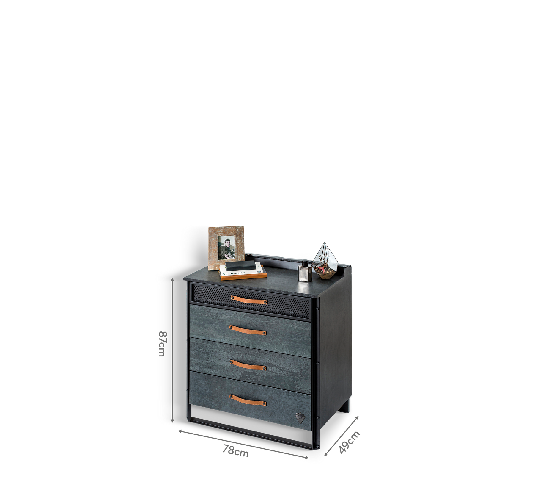 تسريحة Dark Metal تعكس انسجامًا أنيقًا بين المعادن والخشب والجلد. إذا كنت ترغب في إضفاء لمسة عملية وأنيقة على غرفة الشباب مع مساحات مخصصة للأغراض الشخصية، فإن تصاميم سلسلة Dark Metal هي الخيار الأمثل. تتميز بتوفير مساحة تخزين واسعة، ومقابض جلدية، مع قسم مخصص للإكسسوارات وأربعة أدراج كبيرة.