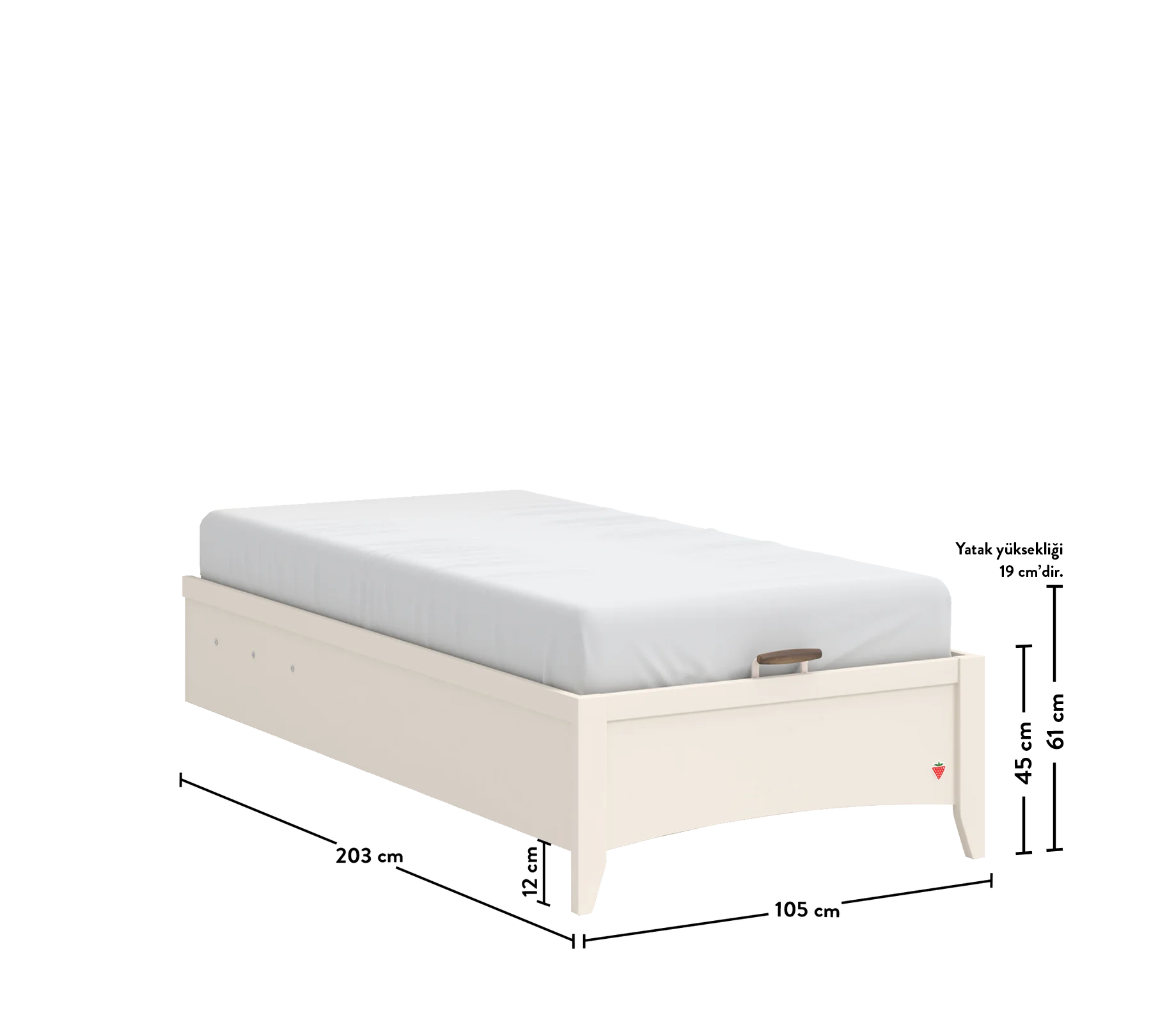 The under-bed base allows you to easily store your bedding, pillows, or seasonal items thanks to its large interior volume. The base top plate offers ease of production and transportation with its single-piece construction, while the bottom plate is made of 2 parts.