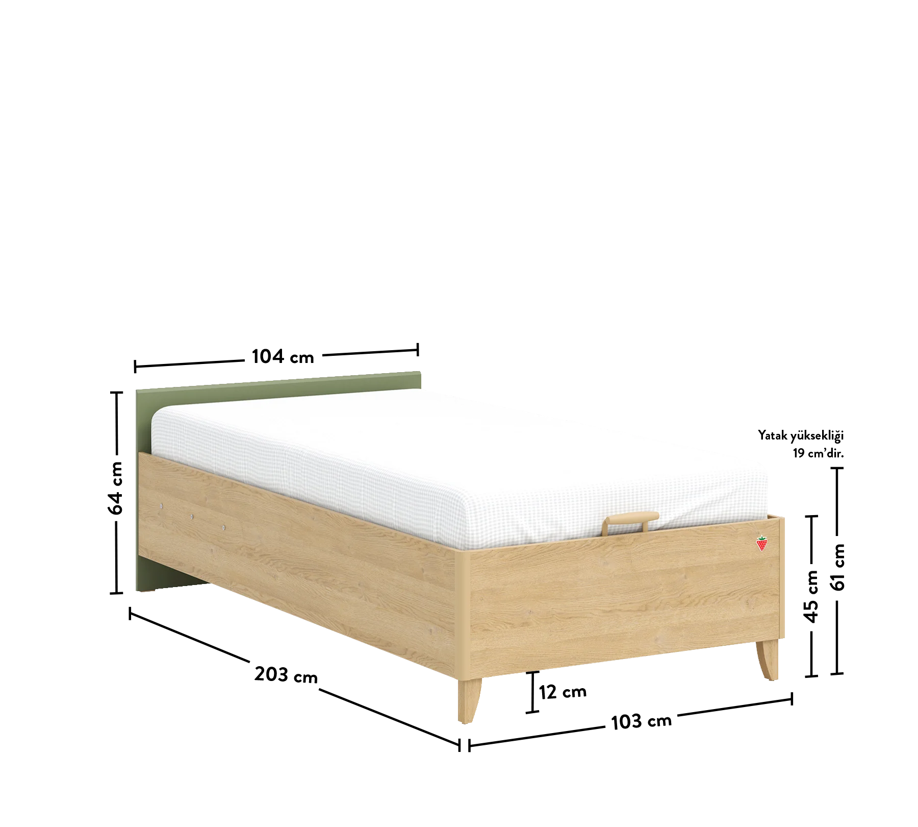 The Loof Headless Base Bed 100x200 cm, where modern design meets comfort and functionality, adds an elegant touch to your bedroom. The soft detail applied to the upper edge of the half headboard provides aesthetic appeal while you enjoy your relaxation. The handles and legs are made of wood, ensuring design integrity.
