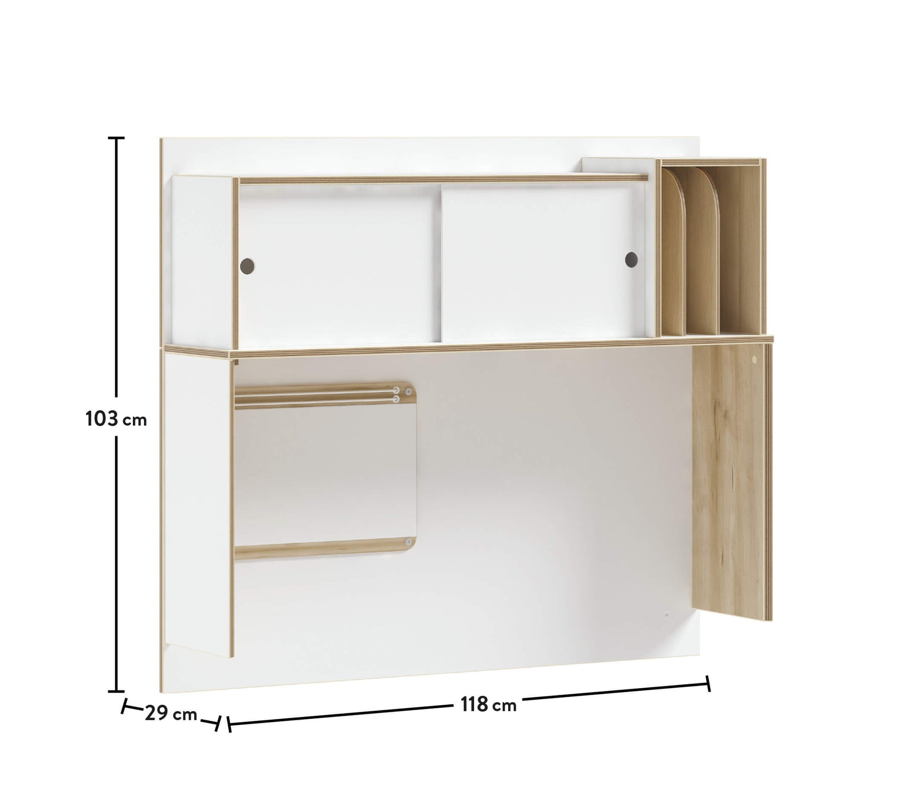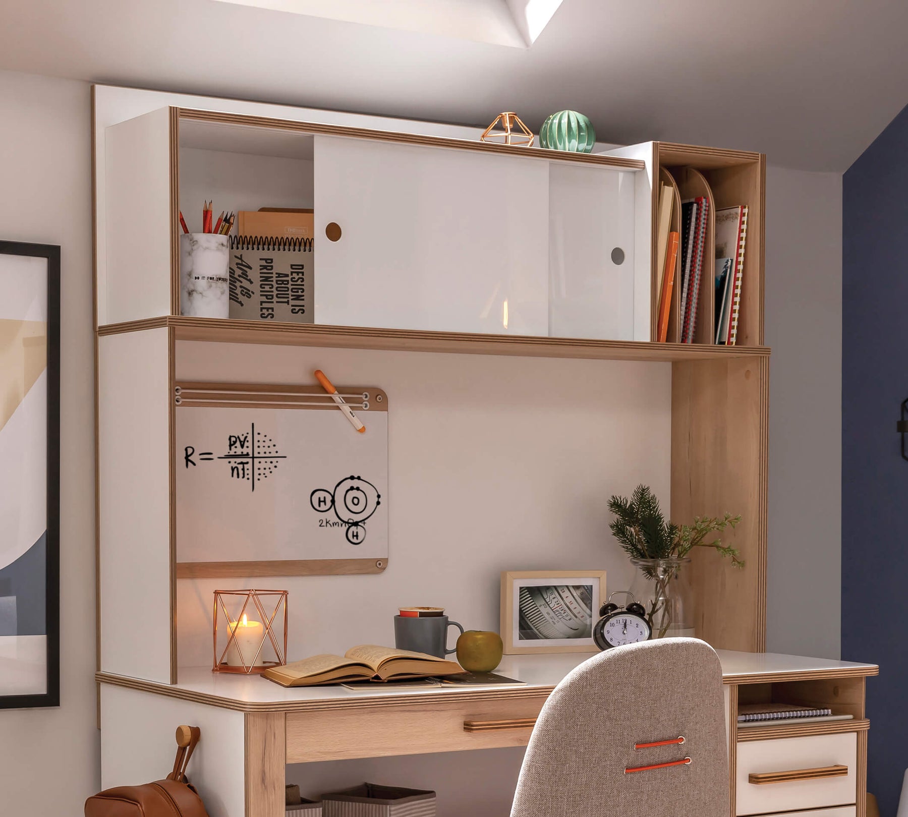 وحدات العمل العصرية، تم تصميمها مع مراعاة كل ما قد تحتاجه في منطقة العمل. يتم تعزيز الاستخدام بواسطة لوح الكتابة باللون الأبيض، والرفوف ذات الأبواب المنزلقة التي يمكن تحريكها في اتجاهات مختلفة، وأقسام الملفات المفتوحة. وبالتالي، يتم توفير بيئة عمل أكثر كفاءة.