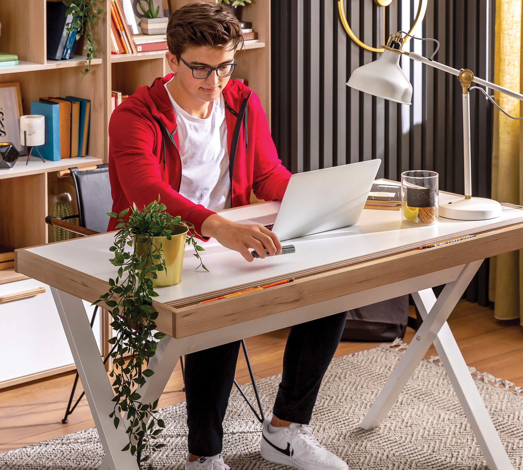 يتميز مكتب Modera Young بتصميمه البسيط والعصري، مما يجعله واحدًا من أكثر المنتجات استخدامًا في غرف الشباب. يخلق المكتب بيئة عمل مريحة وهادئة، مما يساهم في تحسين جودة حياتهم، كما يتناسب مع الوحدات الأخرى في الغرفة.