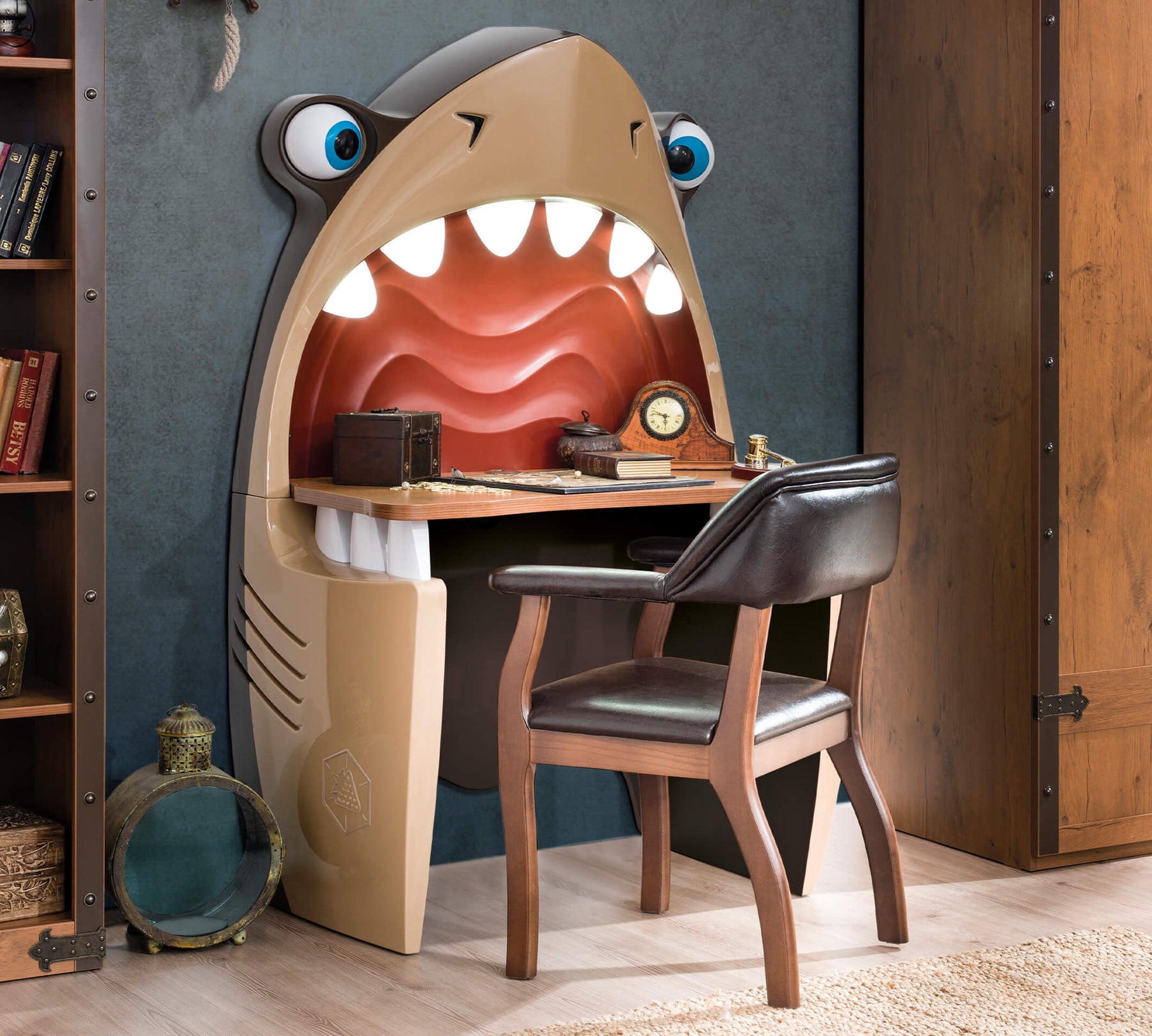 يمكنك خلق عالم مختلف تمامًا بدلاً من غرف الأطفال المتشابهة باستخدام مكتب Pirate Shark. بتصميمه الذي يبدو وكأنه خرج من عالم الخيال، يمكنك تغيير أجواء غرف الأطفال بشكل مميز.