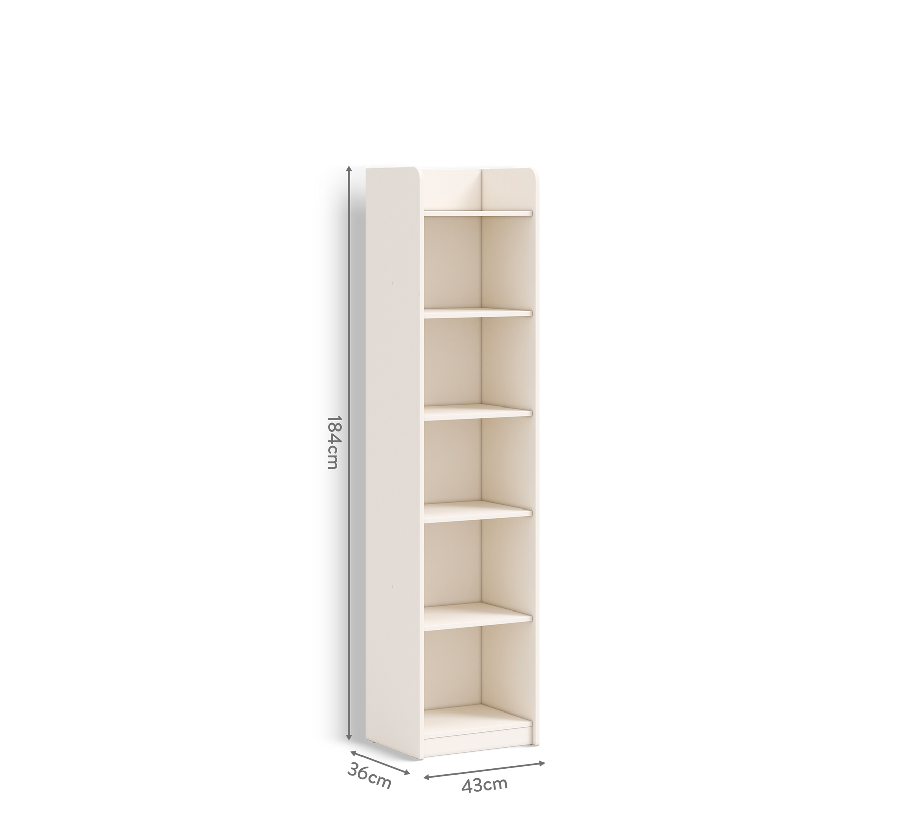 تعتبر مكتبة Varia كريم فاتحة مثالية للمساحات الصغيرة بشكلها الضيق والطويل.