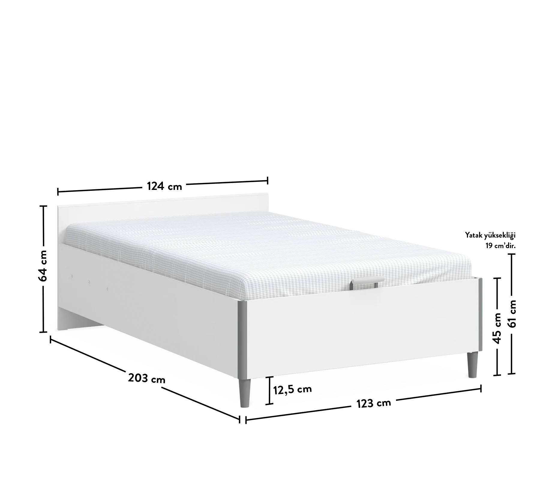 White Bed without Headboard with Base 120x200 is specially designed to provide a comfortable and cozy sleep space. While designing it, ample solutions were offered to fit all your belongings into the room.