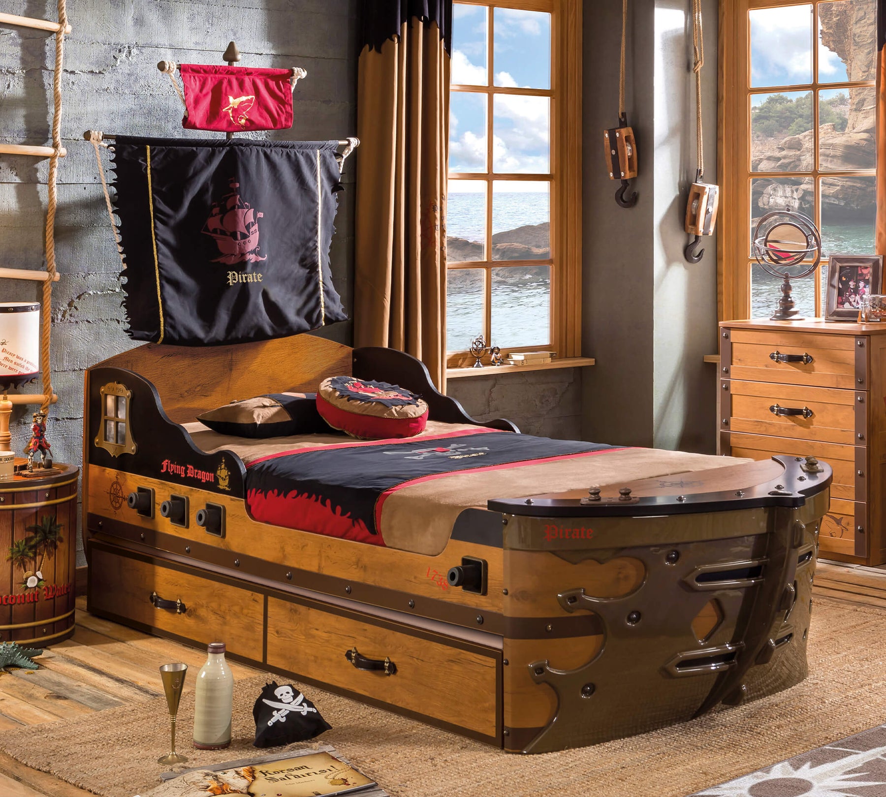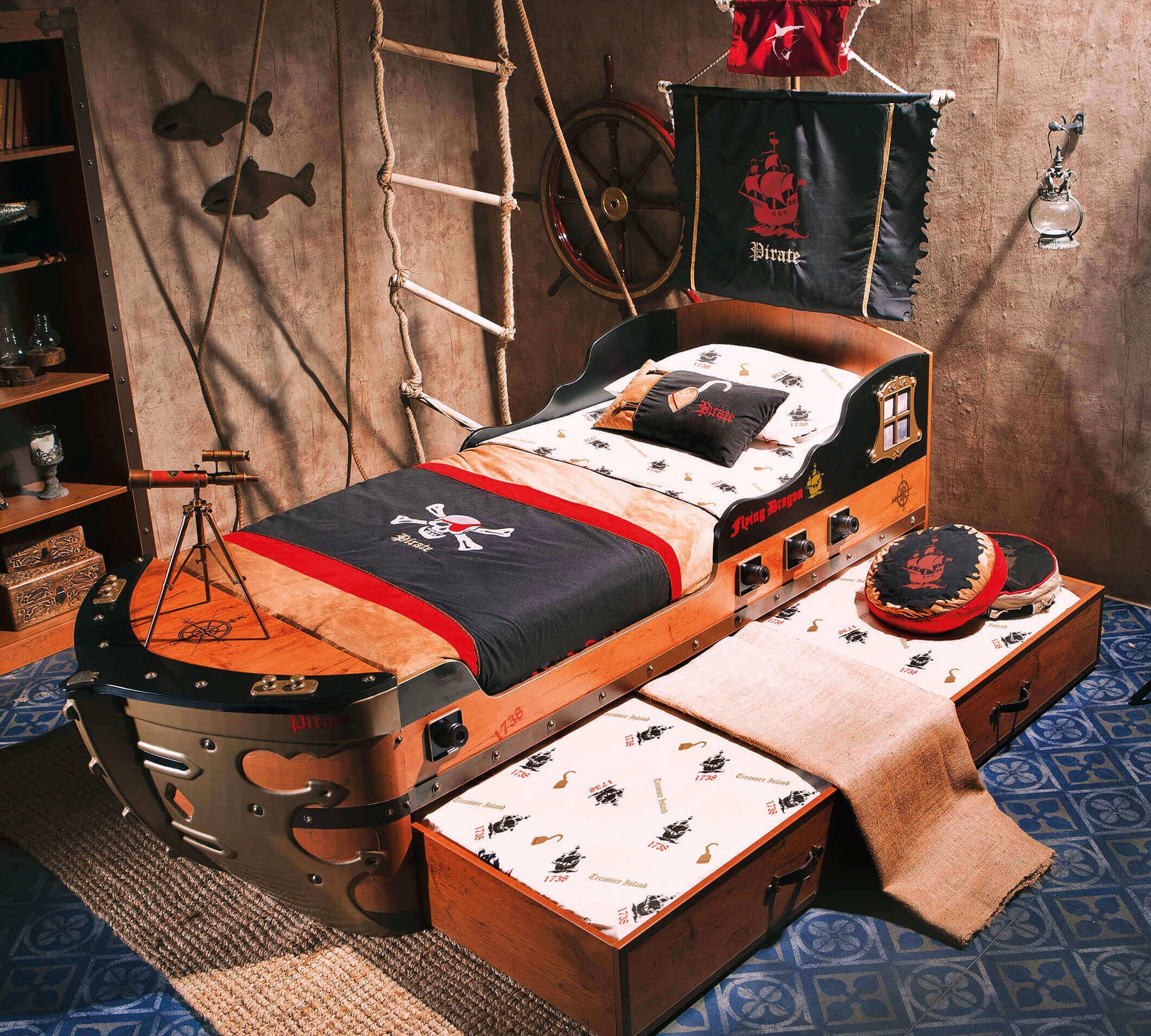 Every pirate ship can have hidden compartments. With the Pirate Lower Bed, you can create these secret spaces in the child's room. The lower bed, compatible with the ship bed, transforms into a guest bed for your child's friends.