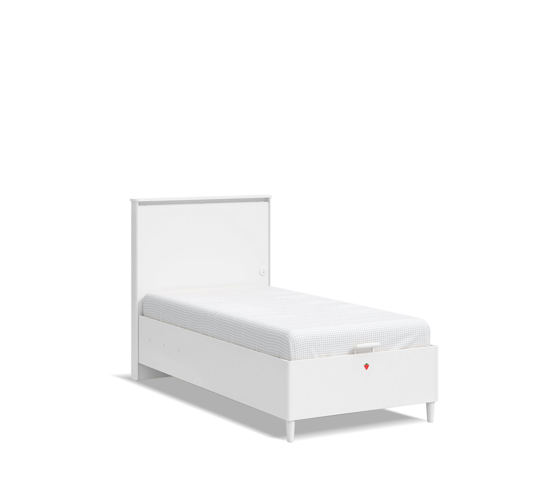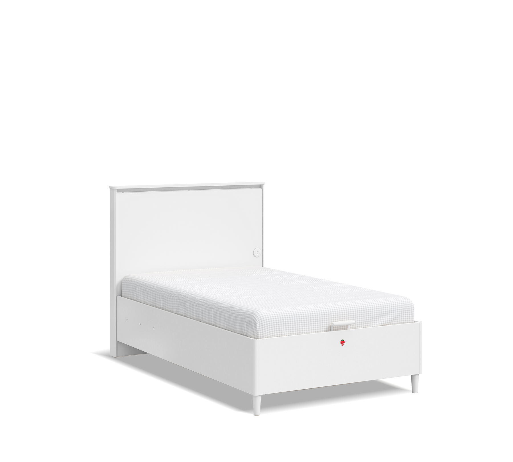 The Varia White Flat-Head Bed Base with Storage is a 3-piece bed base; 2 mm edge banding. Maximum load capacity of 130 kg. Electrostatic painted metal parts. Safety lock base strut (1000 N). 12 cm leg height for robotic vacuum cleaners. Provides 490L of storage space.