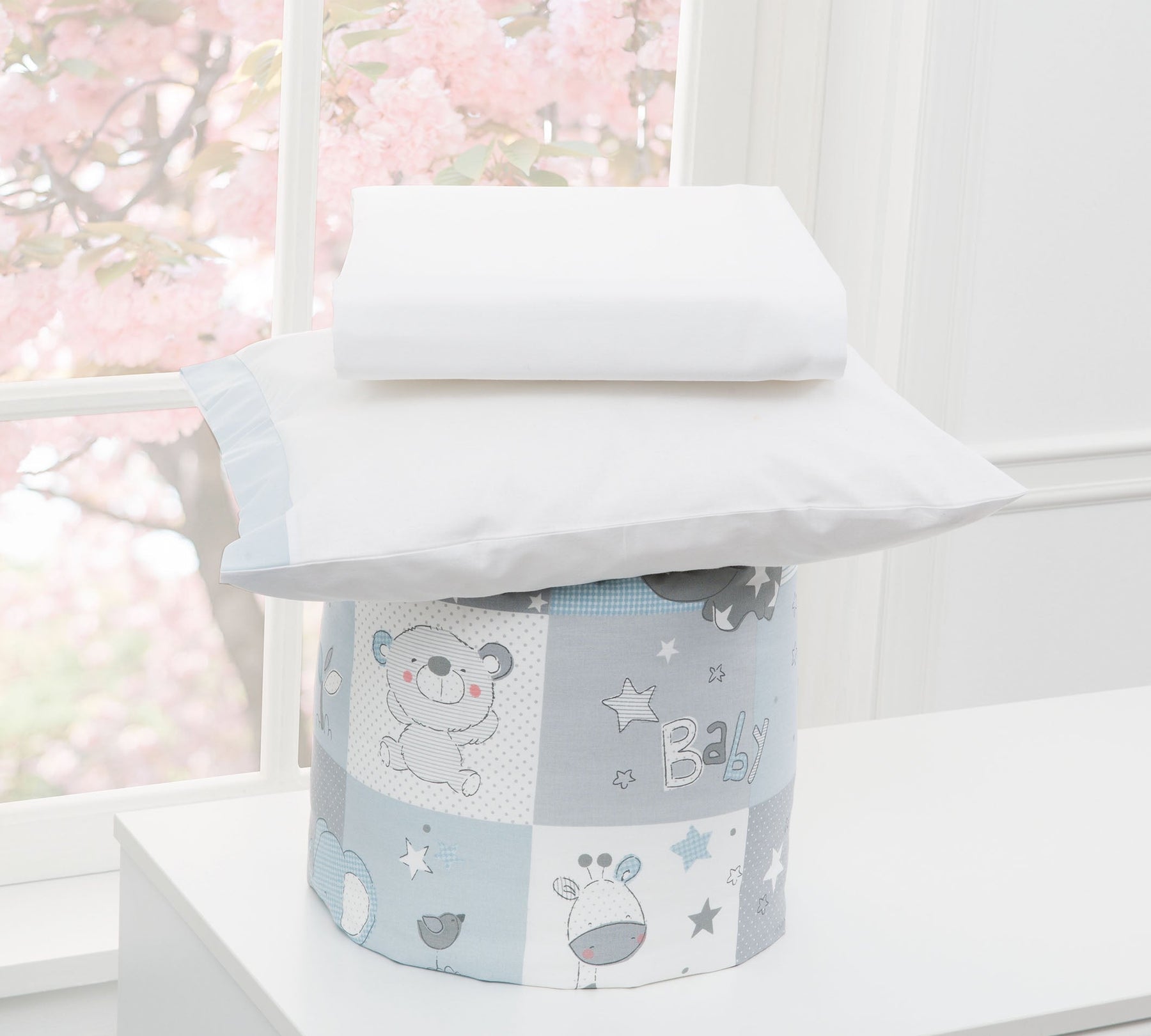 • Einfarbiges weißes Bettlaken und Kissenbezug aus 100 % Baumwolle