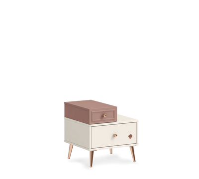 Elegance Nightstand, which complements the elegance by being located at the head end of the bed, where small items and laundry can be positioned, consists of 2 different sizes of overlapping drawers. Elegance Nightstand, with its elegant appearance unique to the series, has an ergonomic and useful design. 15 kg carrying capacity; 1 large drawer, 1 large drawer has a smaller drawer that can be positioned to the right or left as desired. While the lower drawer closes more quietly and slowly by using a brake rail, the upper drawer is designed without a rail.