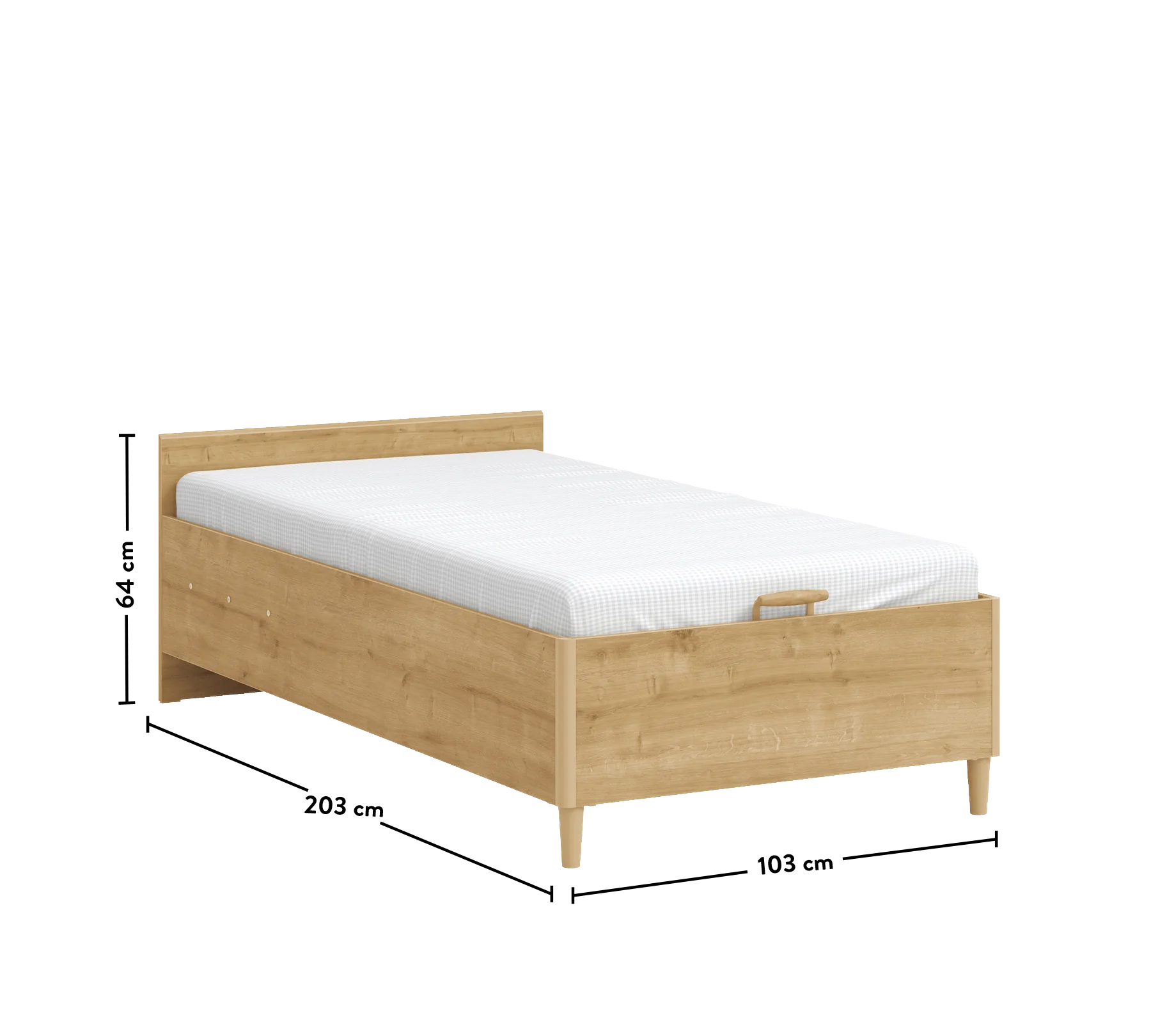 The 100x200 cm base beds, designed for spacious solutions in small rooms, feature a 12 cm high leg structure that allows for the use of a robot vacuum cleaner.