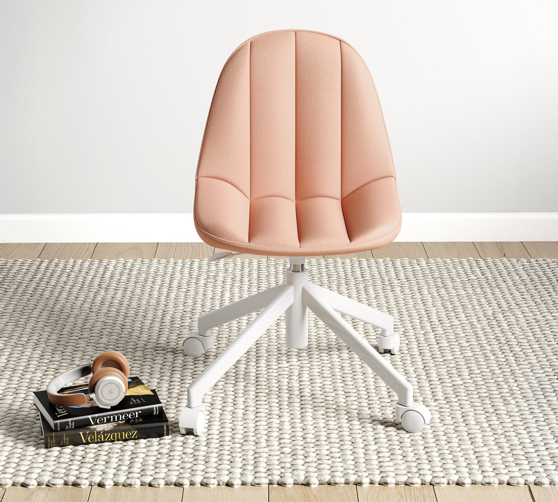 • Upholstery in salmon linen fabric