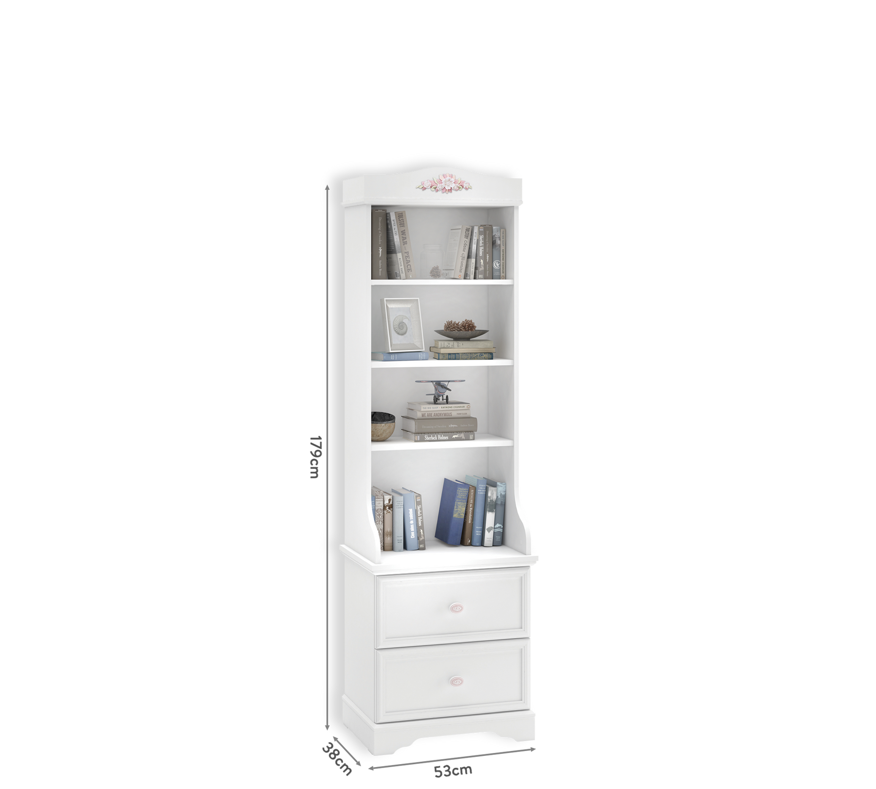 In addition to its fine details and elegant appearance, the durable Rustic White Bookcase is a module your children can enjoy using for many years. Consisting of 2 drawers and 4 shelves, the bookcase provides a place for your children’s favorite books, photos, and cherished items as they grow. The drawer fronts, with a 15 kg weight capacity, feature rustic panels that add a unique and aesthetic touch to children’s rooms. The spring-loaded drawers are easy and safe for kids to use, giving you peace of mind about safety.