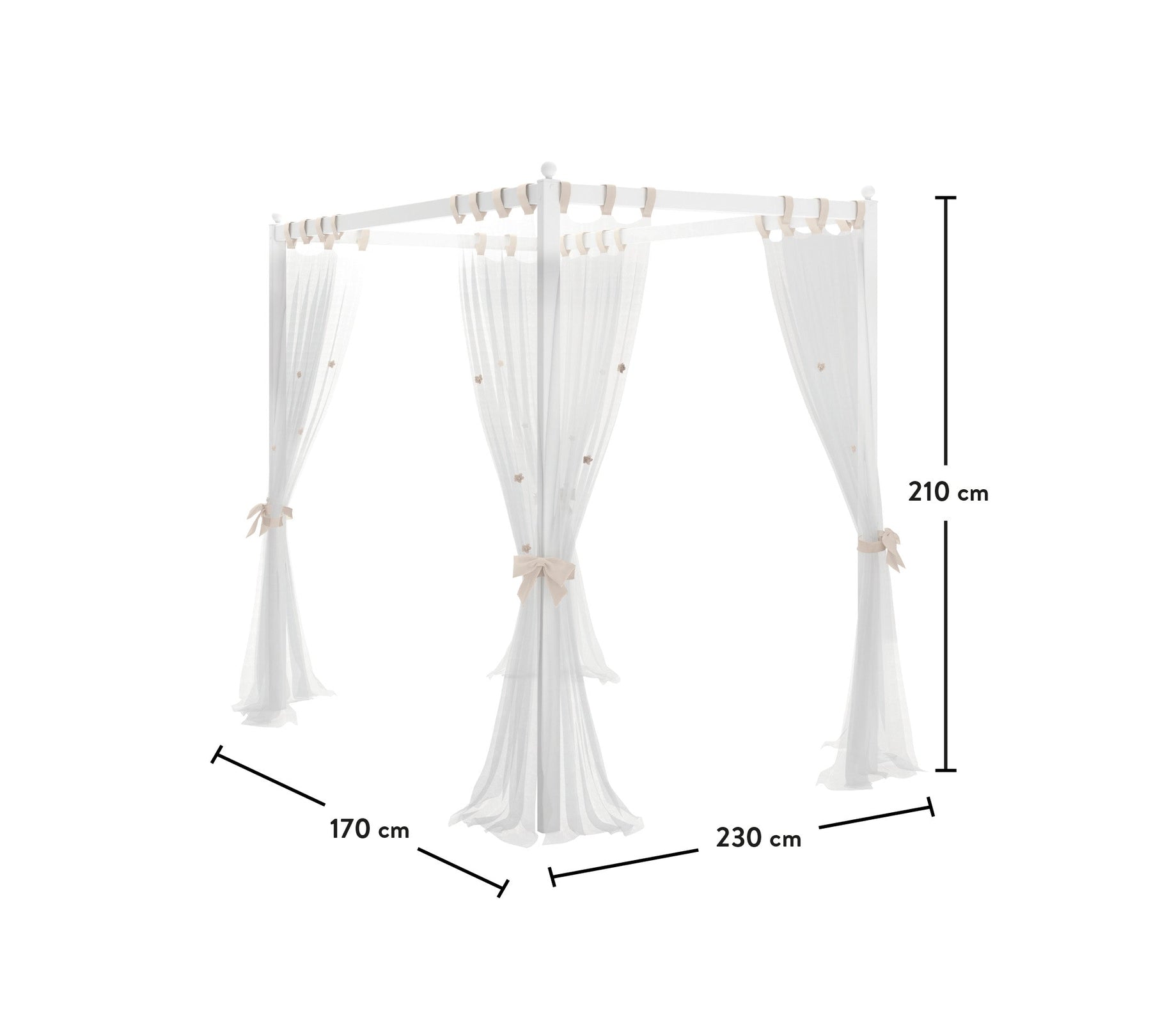 The product, compatible with the canopy module and beds of the Rustic White youth room collection, consists of 8 pieces of sheer fabric designed to add a romantic touch to the decor. Featuring hand-sewn floral patterns on white sheer fabric, the Rustic White canopy sheer is easy to attach and remove. Measuring 170x210x230 cm, it is designed to fit the Rustic White wooden canopy module. The product can be washed using a delicate washing machine program and ironed at low temperatures.