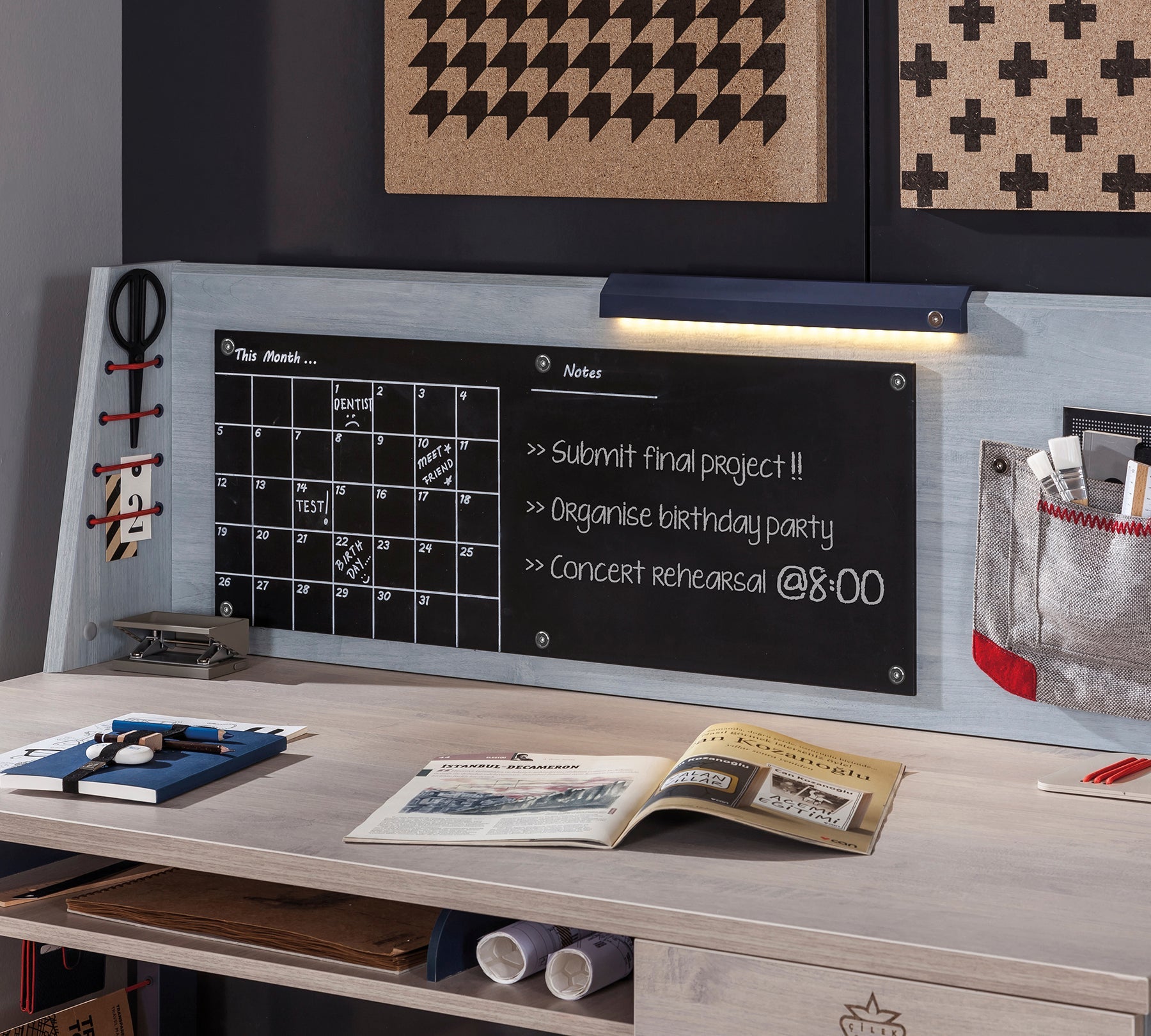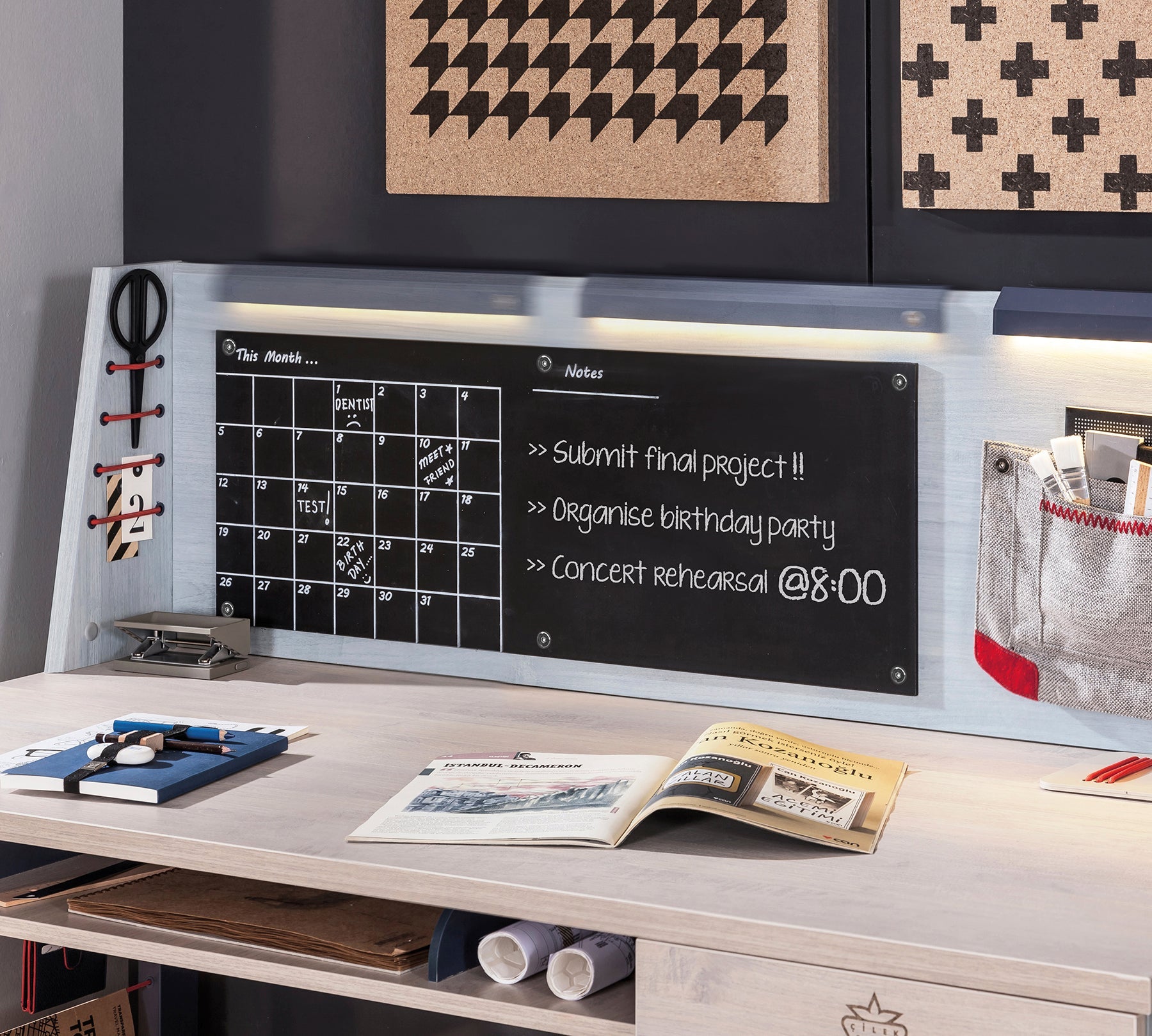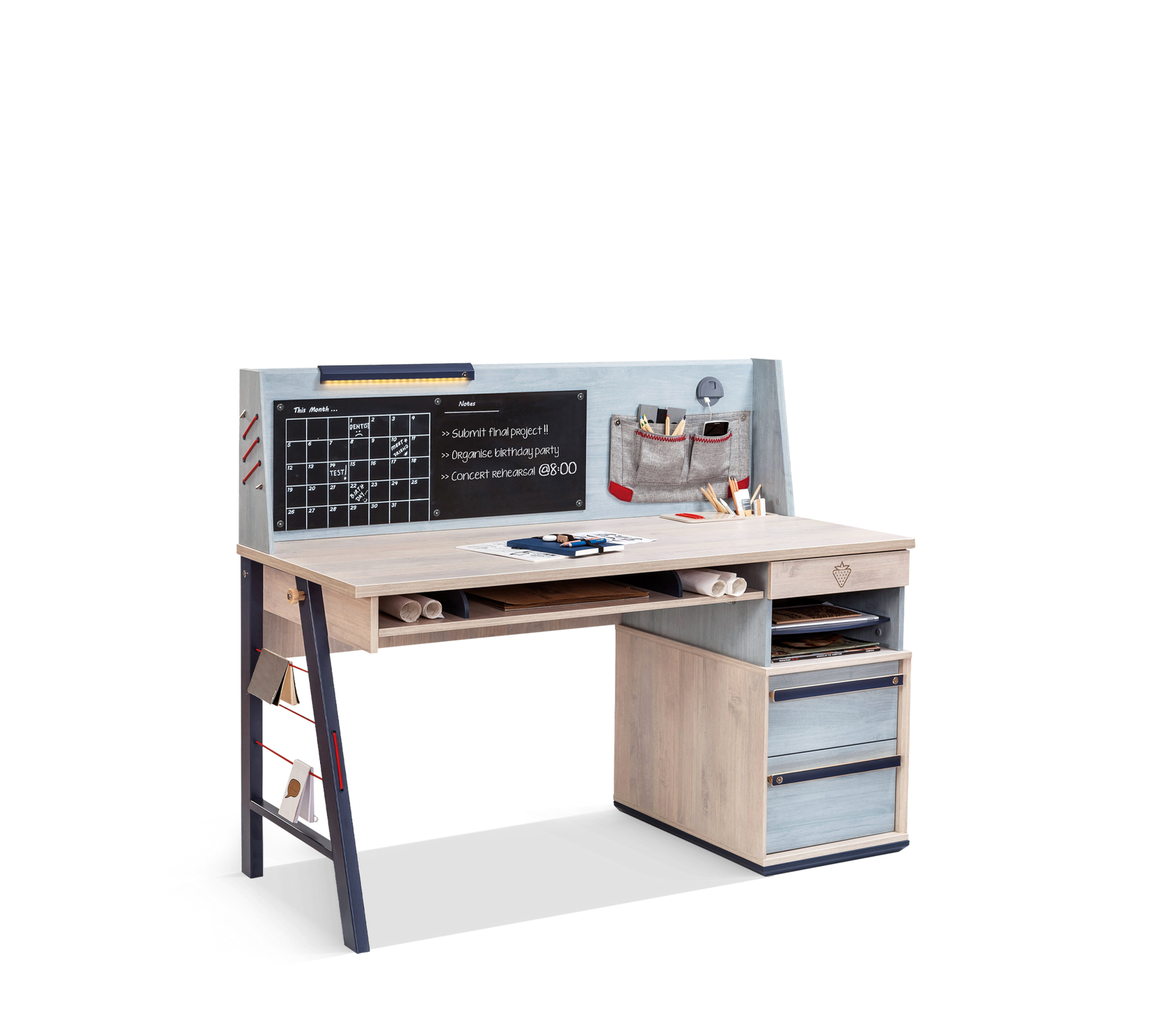 The Trio Large Study Unit, which can be used in harmony with the Trio Large Study Desk, stands out as one of the most functional modules for youth rooms. The dual-port USB adapter used for charging phones and tablets is one of the features that attract and are sought by young people.