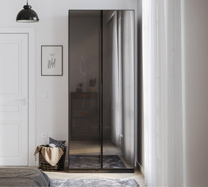 Three-Door Glass Front Wardrobe is a perfect choice for those with comprehensive storage needs. The interior design highlighted by LED lighting combined with tempered glass doors adds a sophisticated touch to the room. With hanging compartments, shelf arrangements, and tandem rail drawers, you can store your belongings in a tidy and stylish manner.
