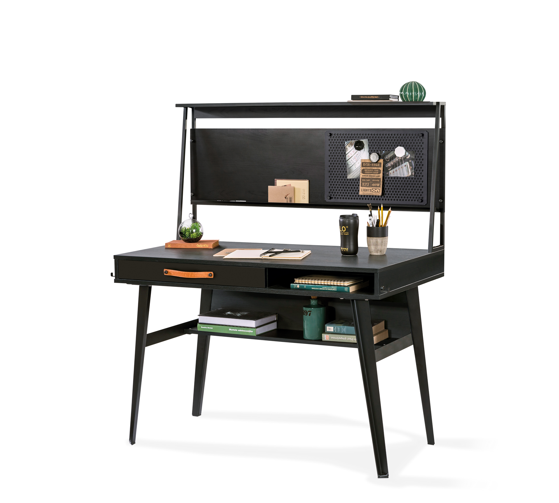 Учебный блок Dark Metal Lıne имеет эргономичные размеры, совместимые с линейным рабочим столом. На устройстве имеется классная доска, на которой можно делать заметки мелом или ручкой. В упаковке товара 1 ручка для письма. Деревянная поверхность, на которой можно делать заметки мелом и карандашом, конструкция металлической панели, подходящая для использования магнита, адаптирует функциональные особенности прошлого к современной жизни. Для большей безопасности, крепление к стене входит в комплект.