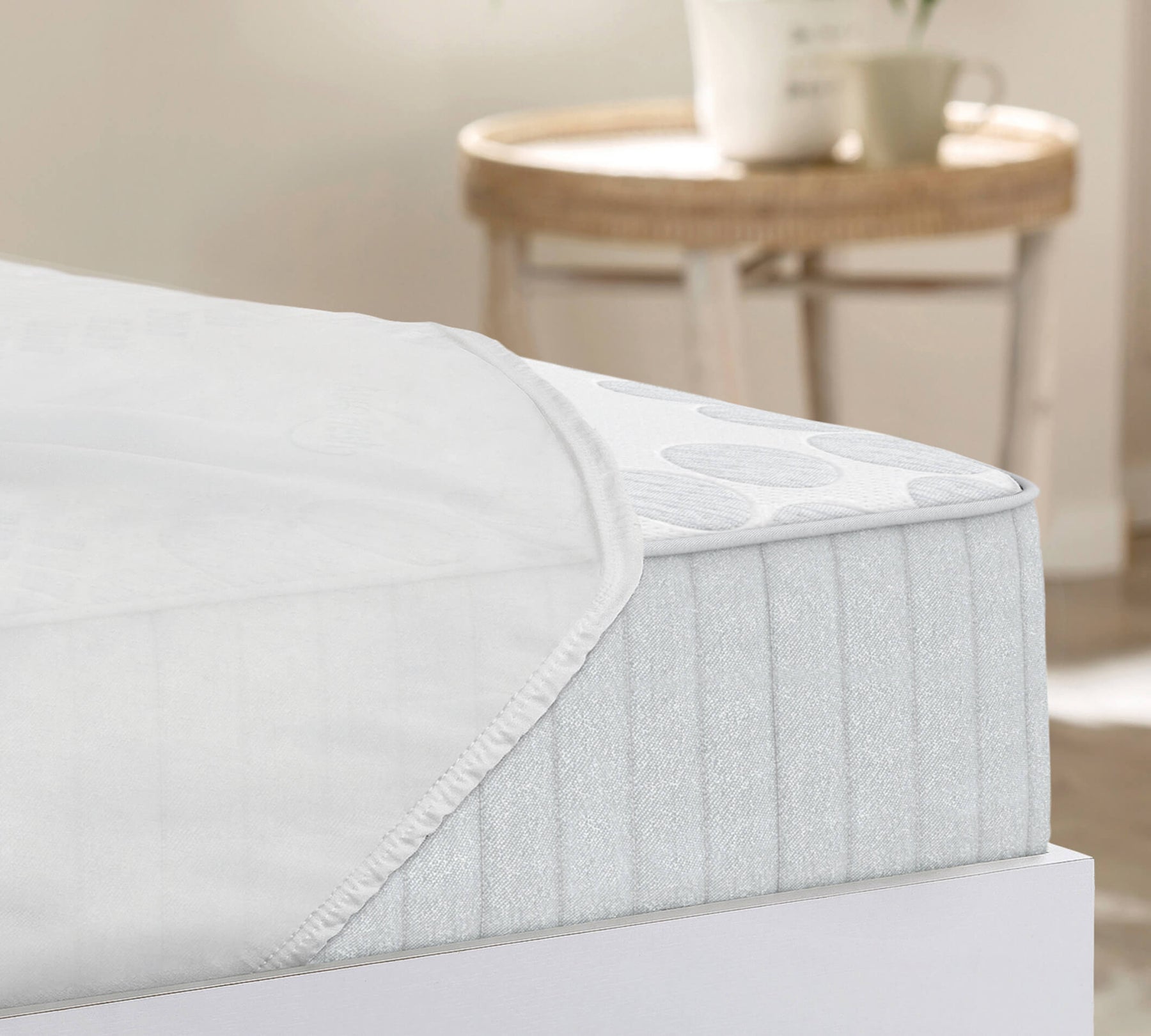 Верхняя поверхность изготовлена из 100% мягкой хлопковой ткани; благодаря эластичным краям, которые позволяют легко натянуть его на матрас, а также микропорам, обеспечивающим воздухопроницаемость, создается оптимальная циркуляция воздуха и поддерживается подходящая среда для сна.