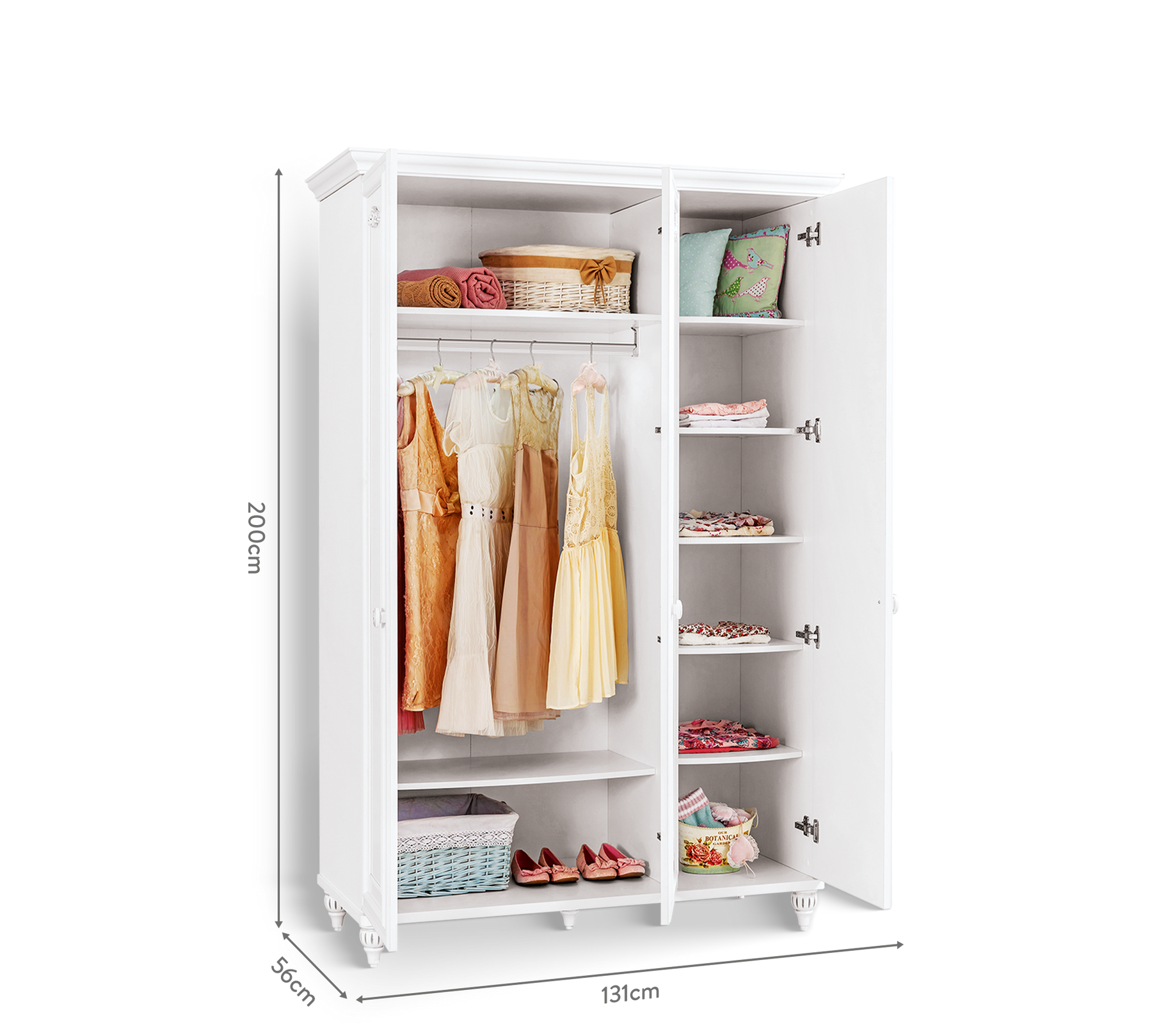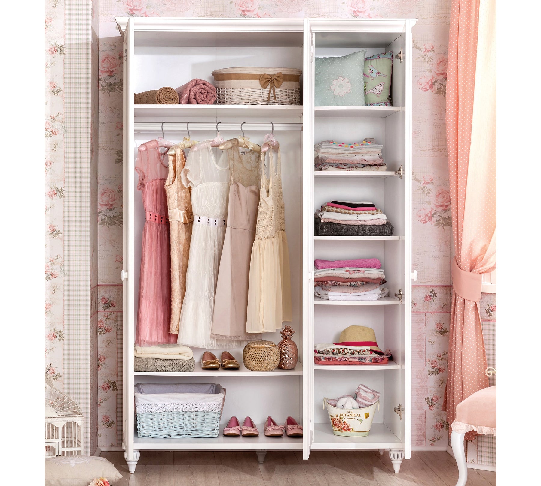 Трехдверный шкаф Romantica, который ценится за современный и простой дизайн, является одним из наиболее часто используемых модулей в детских и подростковых комнатах. Изящный дизайн и оформление шкафа декором в классическом стиле идеально подойдет для создания теплой атмосферы и гармонии. Двери шкафа можно бесшумно и легко открывать и закрывать с помощью системы плавного закрывания. Это также очень безопасно от возможных несчастных случаев. Оснащен устройством для крепления к стене.