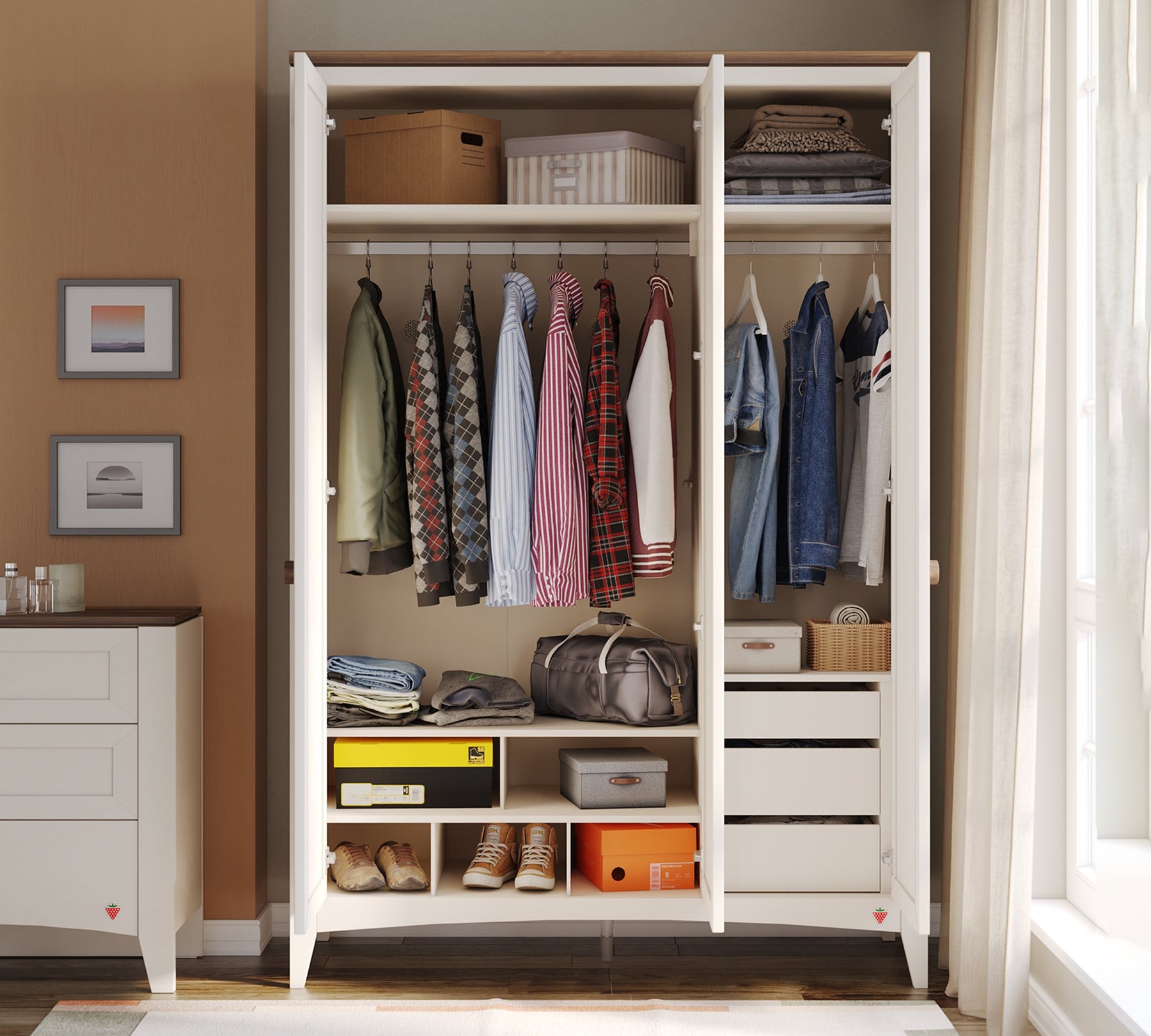 With its modern design and functionality, the Lapel 3-Door Wardrobe is an ideal choice to add order and aesthetics to youth rooms.