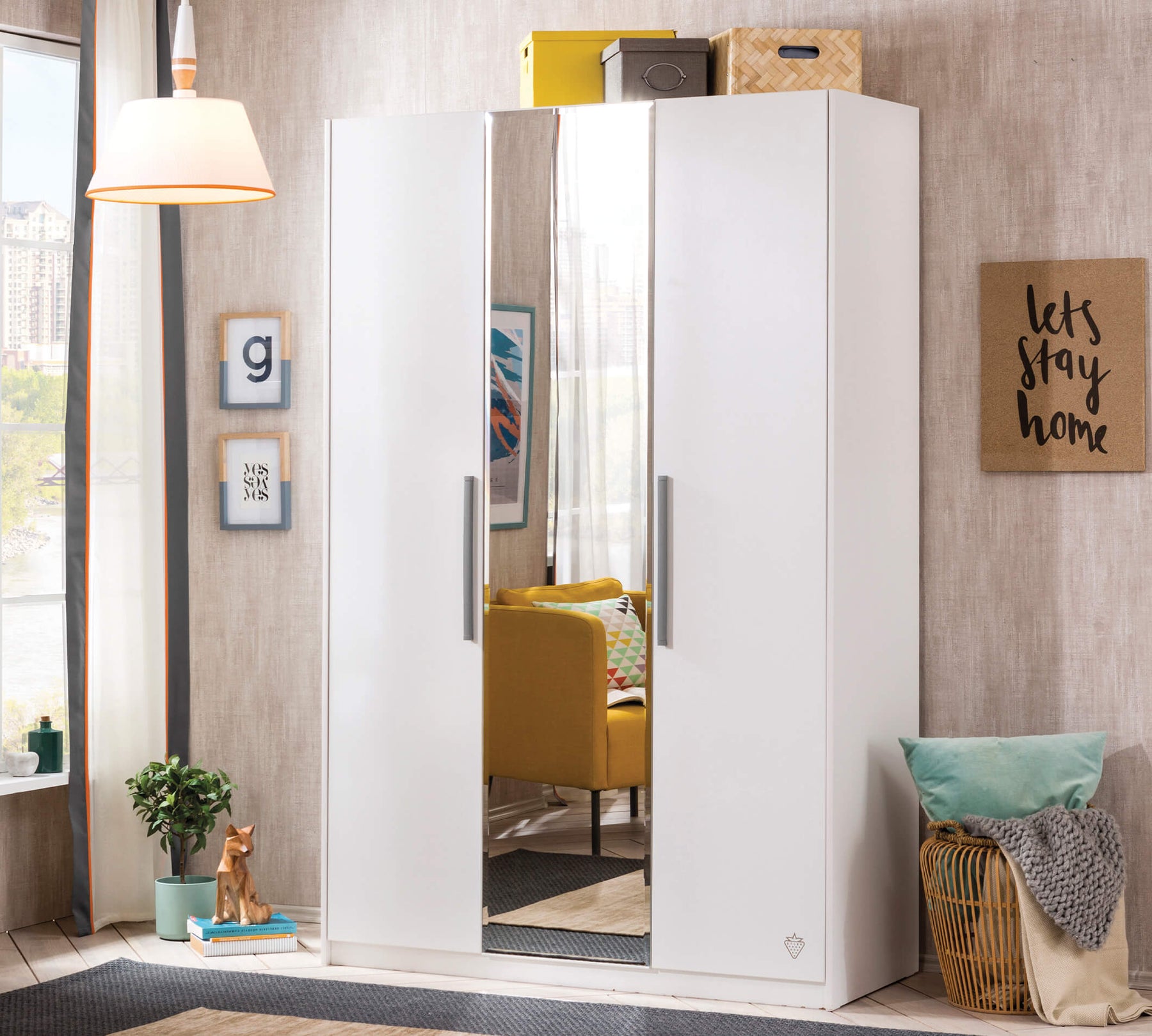 Благодаря стильному и современному дизайну трехдверный шкаф White украшает жилое пространство молодых людей. Его большого внутреннего объема достаточно для удобного размещения вещей и одежды. Он очень функционален благодаря множеству полок и подвесных отсеков. Есть вентиляционные капсулы, чтобы одежда оставалась в более свежем состоянии.