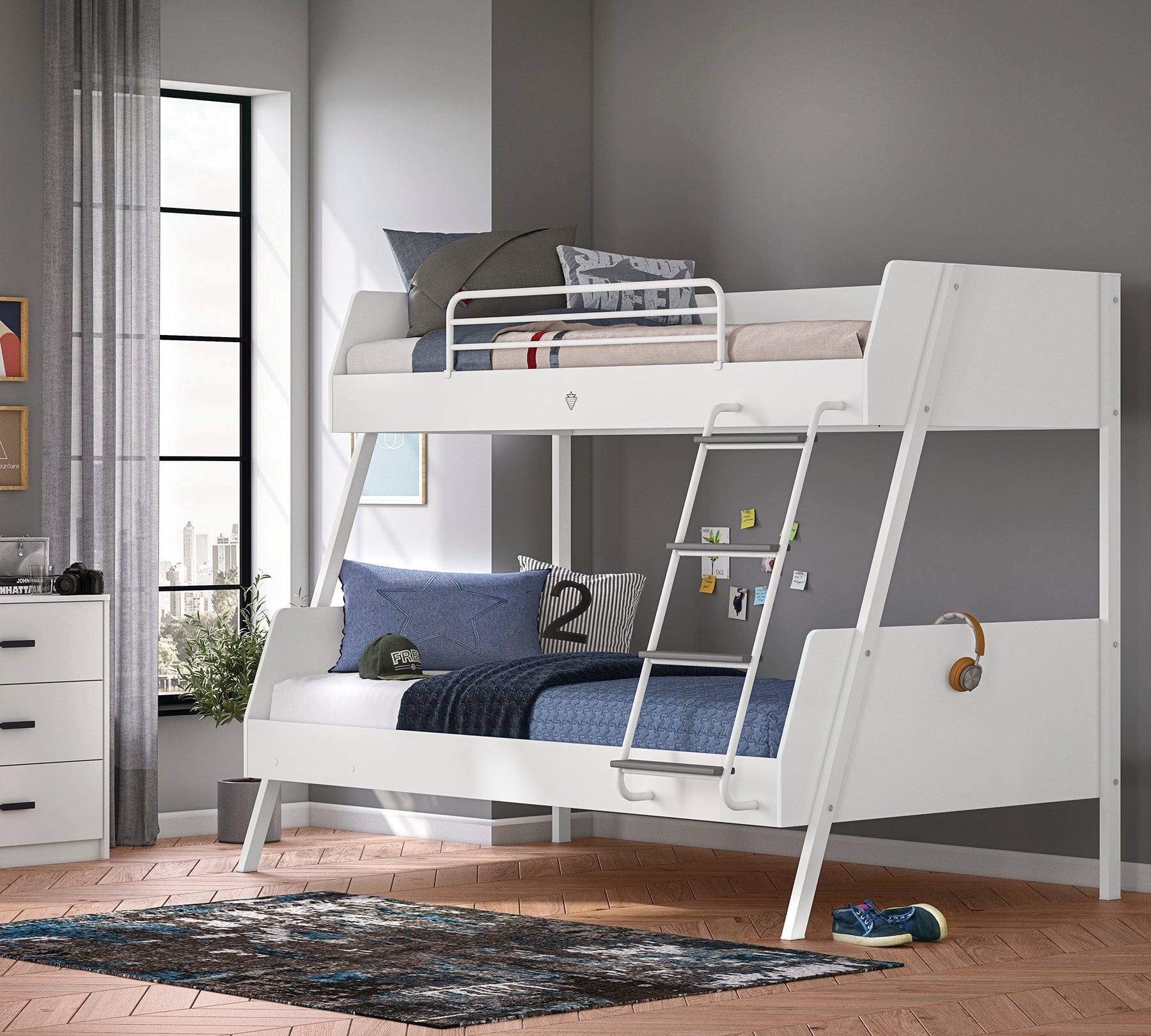 Простота белого цвета или свобода декорирования, которую он предлагает… С широкой двухъярусной кроватью White можно создать спокойную комнату для детей или динамичную обстановку, которую можно комбинировать с цветами, конечно, приняв совместное мнение брата и сестры. Максимальная нагрузка каждого спального места составляет 130 кг.